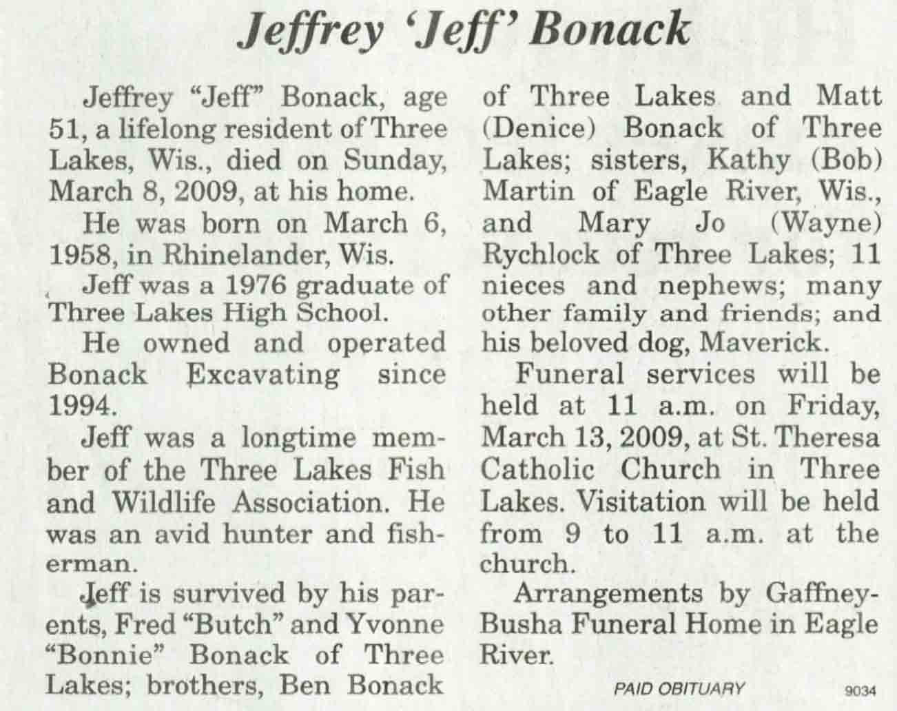 | Bonack | Jeffrey 'Jeff' | 06 Mar 1958 | 08 Mar 2009 | V N-R | 11 Mar 2009 | 4 |
