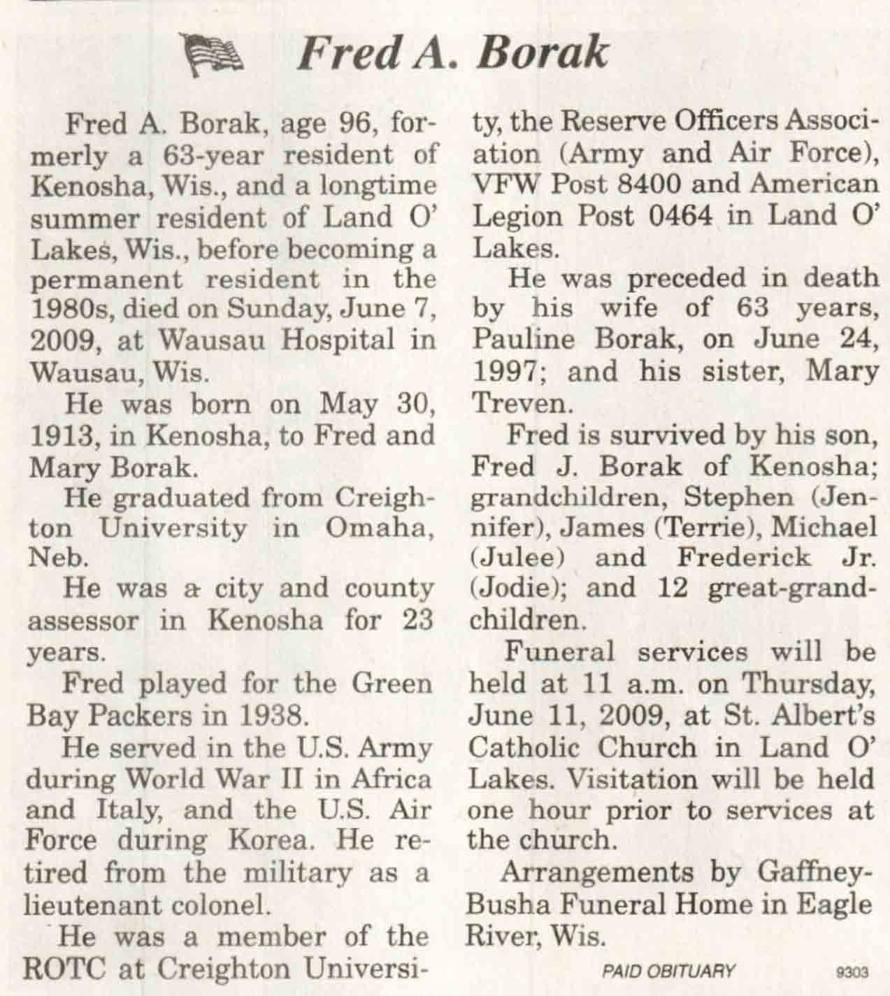 | Borak | Fred | 30 May 1913 | 07 Jun 2009 | V N-R | 10 Jun 2009 | 4A |