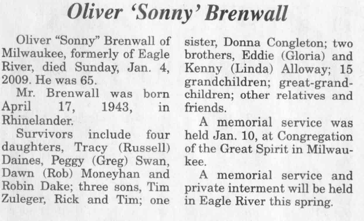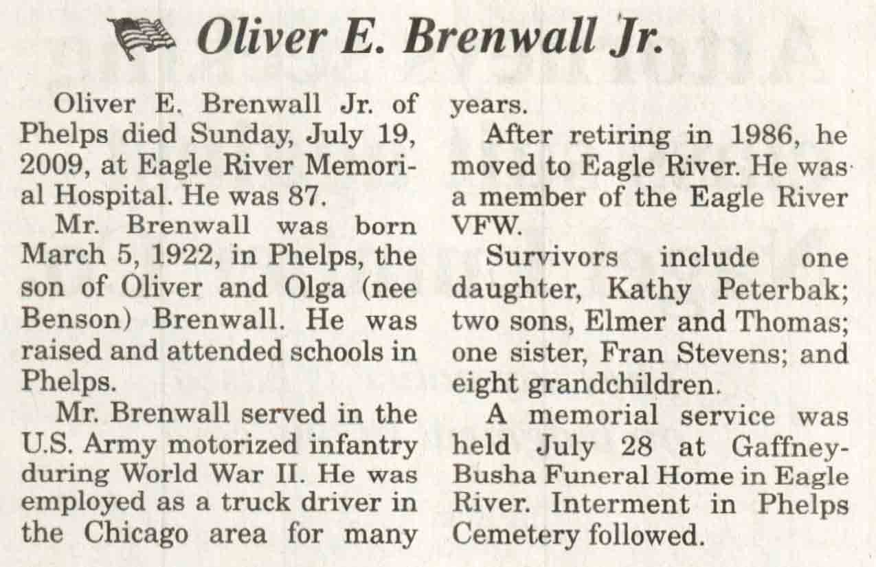 | Brenwall | Oliver E 'Sonny', Jr | 05 Mar 1922 | 19 Jul 2009 | V N-R | 29 Jul 2009 | 4A |