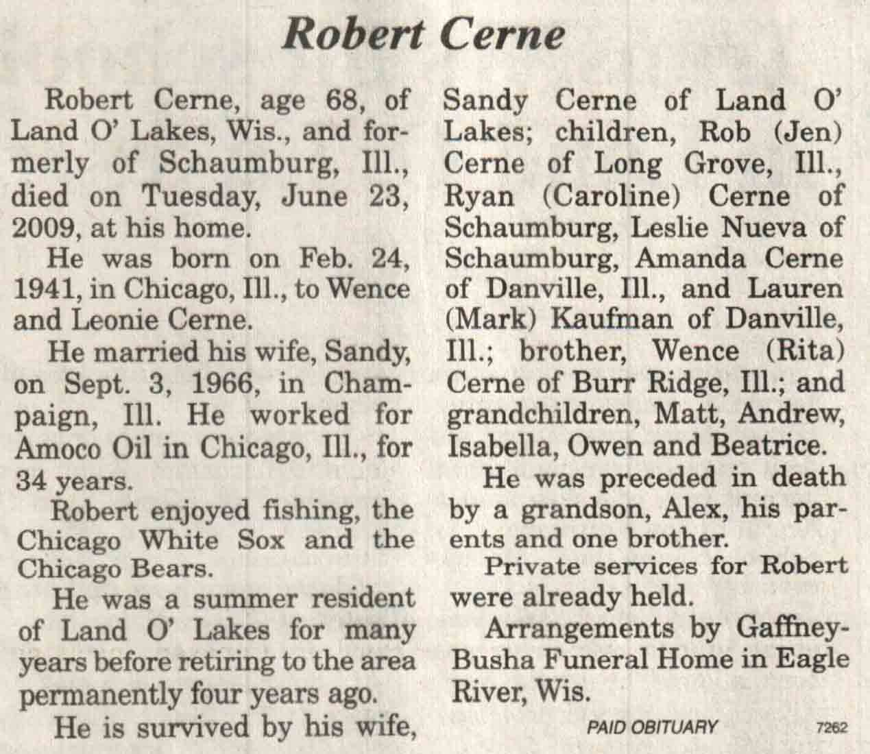 | Cerne | Robert | 24 Feb 1941 | 23 Jun 2009 | V N-R | 08 Jul 2009 | 4A |