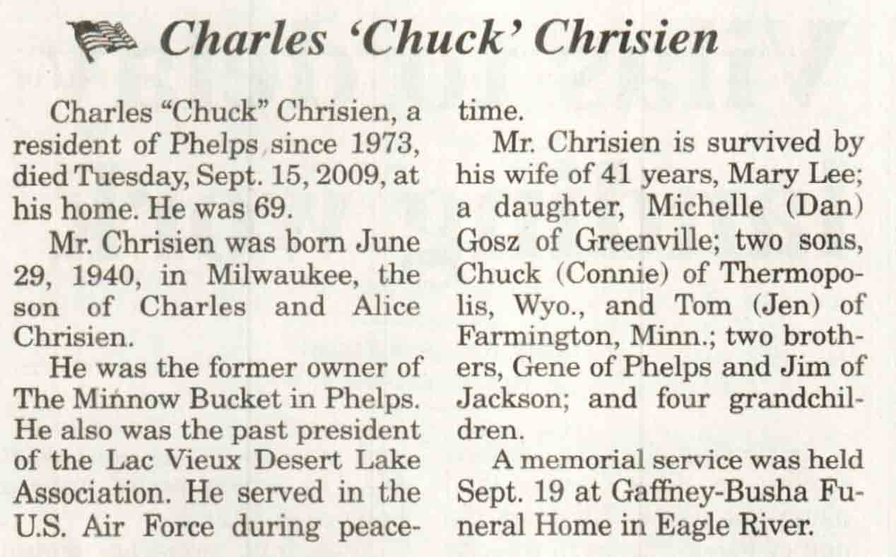 | Chrisien | Charles 'Chuck' | 29 Jun 1940 | 15 Sep 2009 | V N-R | 23 Sep 2009 | 4A |