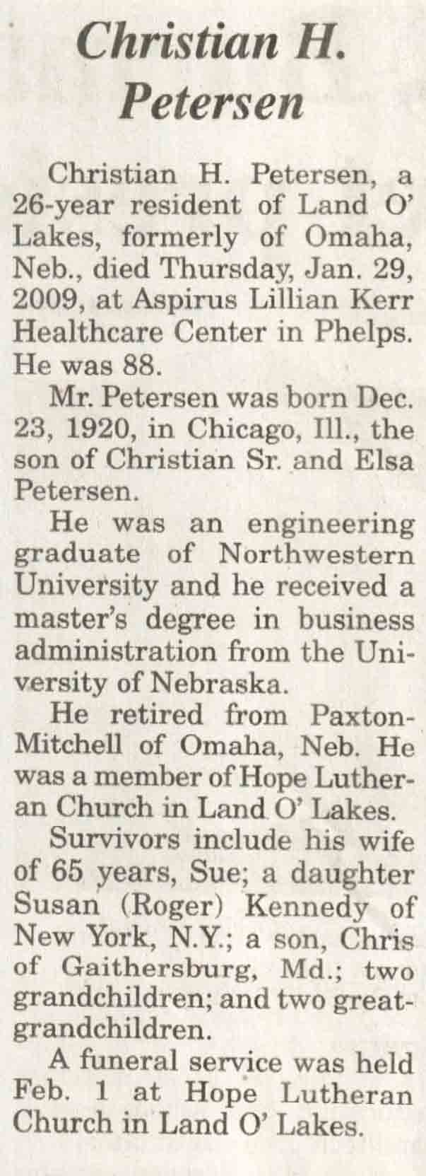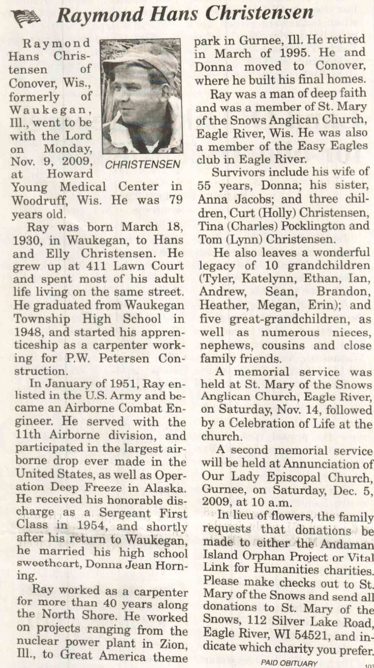 | Christensen | Raymond Hans | 18 Mar 1930 | 09 Nov 2009 | V N-R | 18 Nov 2009 | 4A |