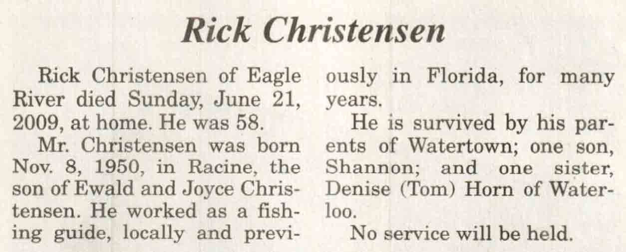 | Christensen | Rick #1 | 08 Nov 1950 | 21 Jun 2009 | V N-R | 24 Jun 2009 | 4A |