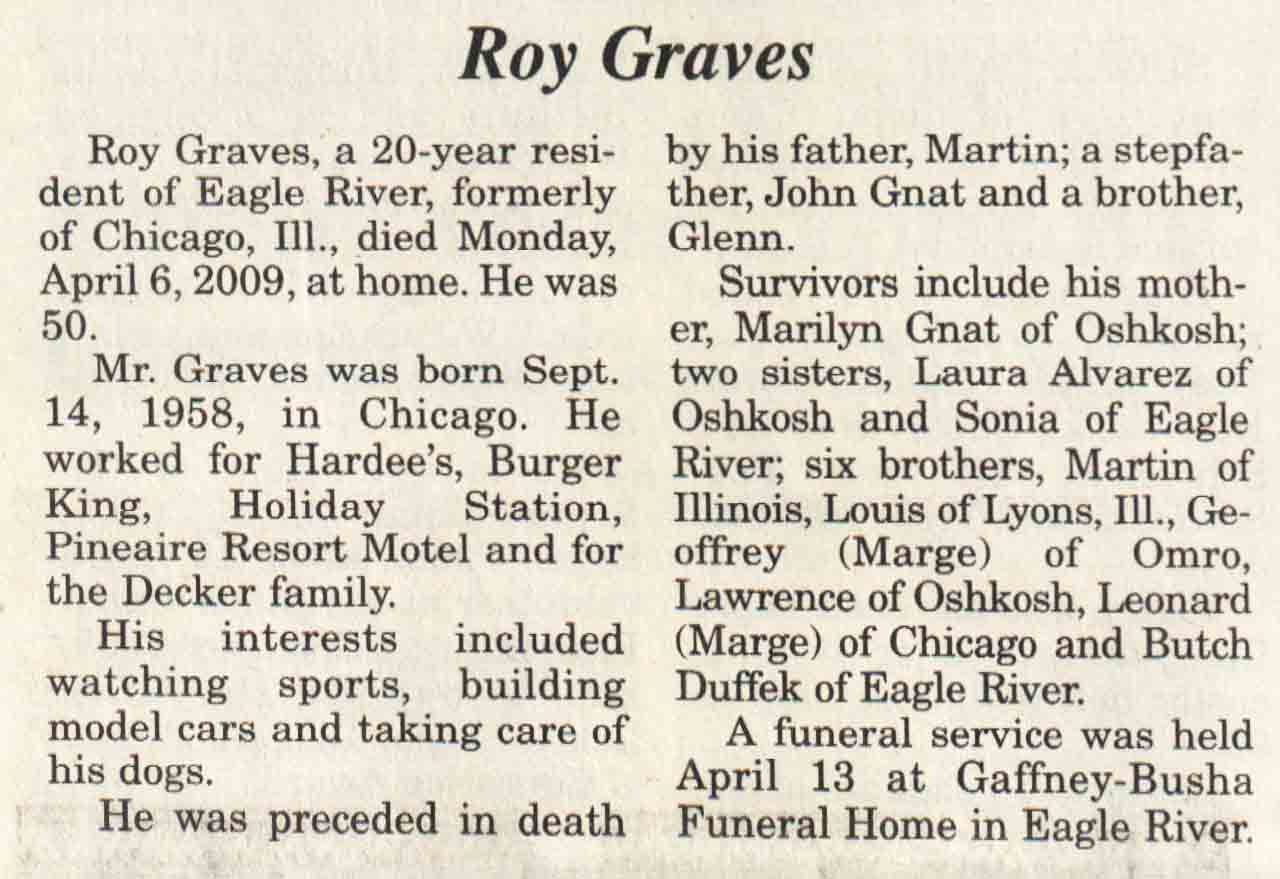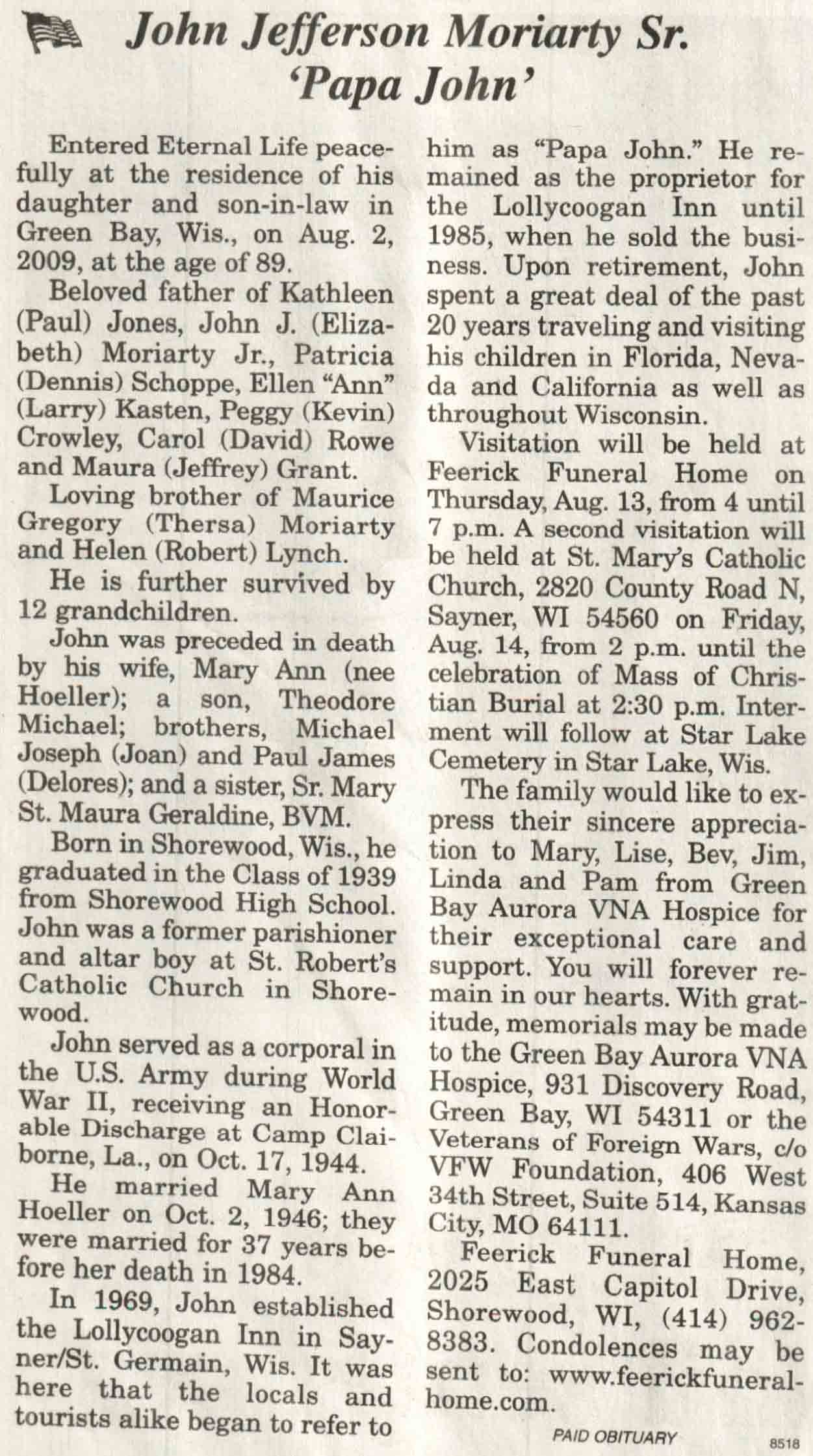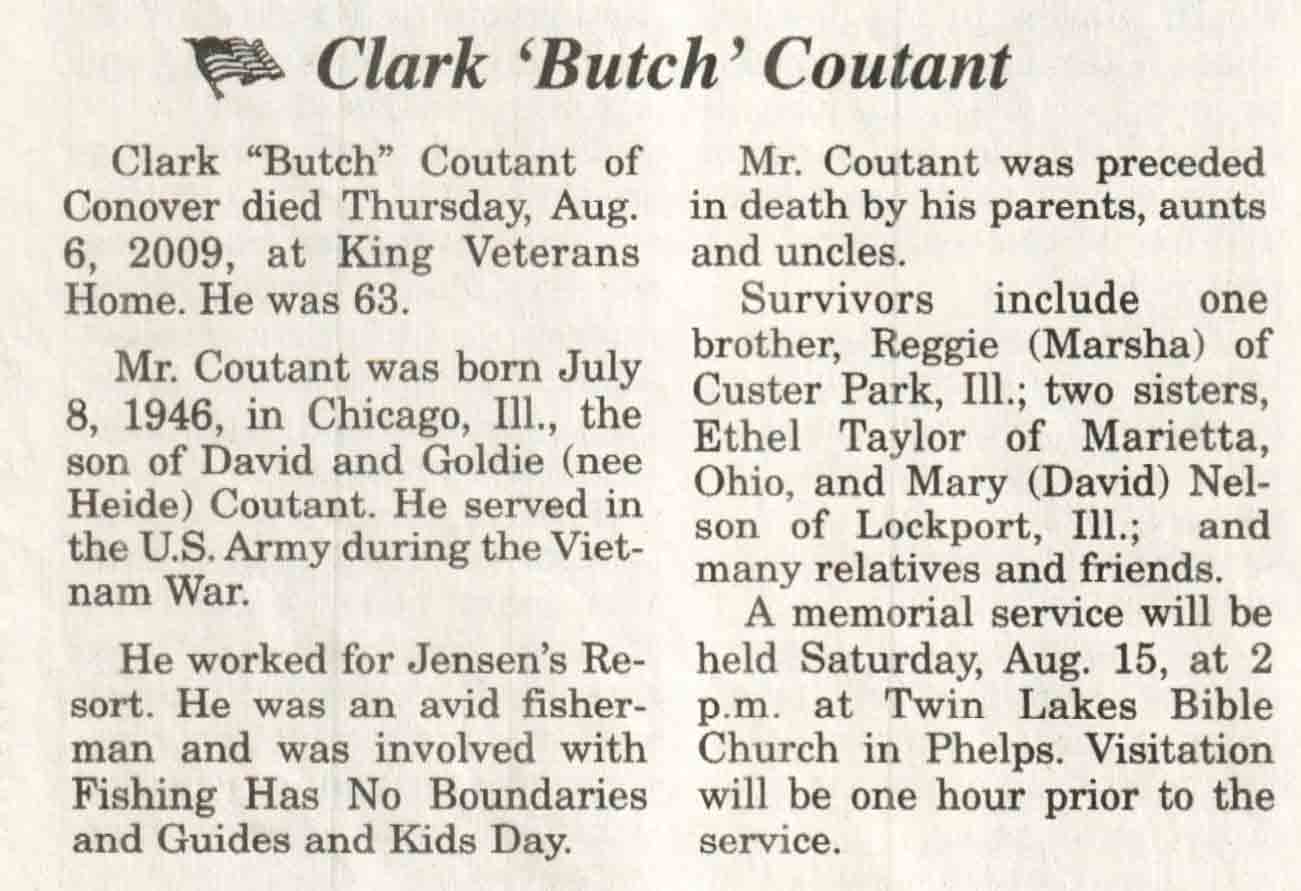 | Coutant | Clark 'Butch' | 08 Jul 1946 | 06 Aug 2009 | V N-R | 12 Aug 2009 | 4A |
