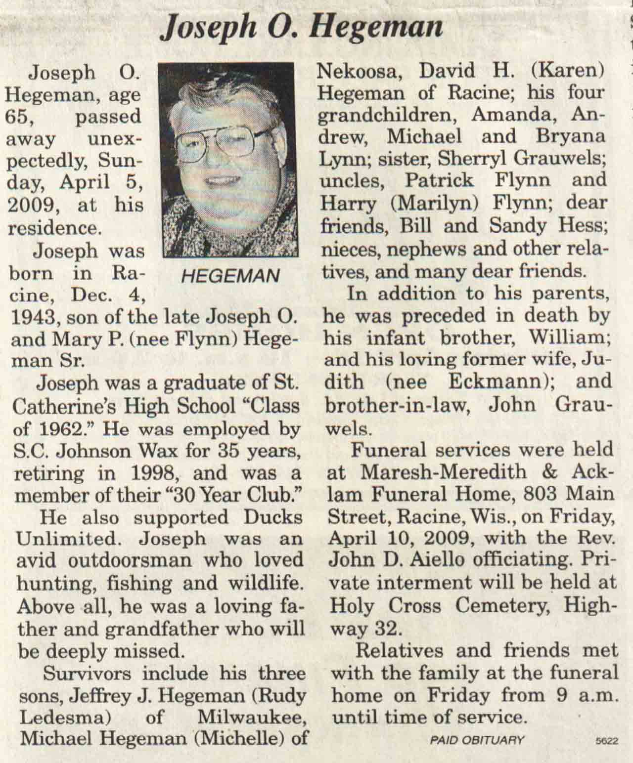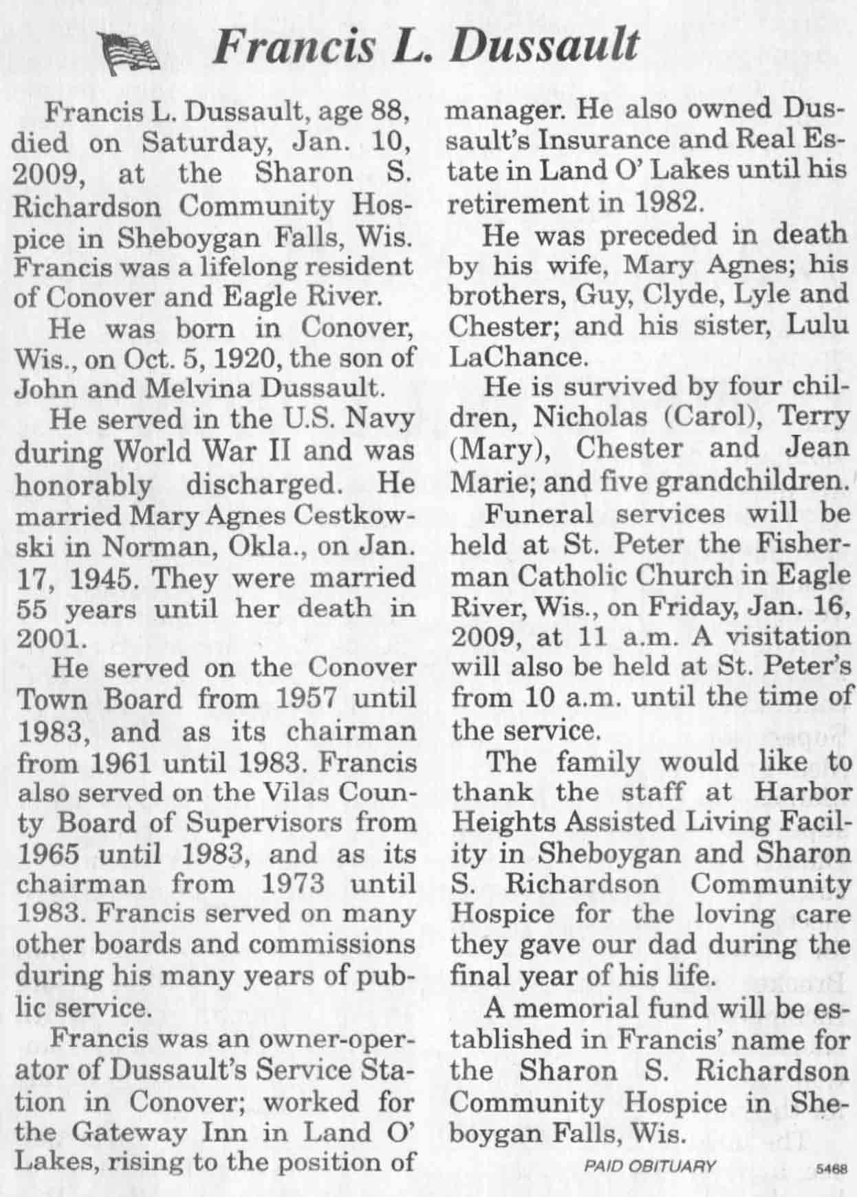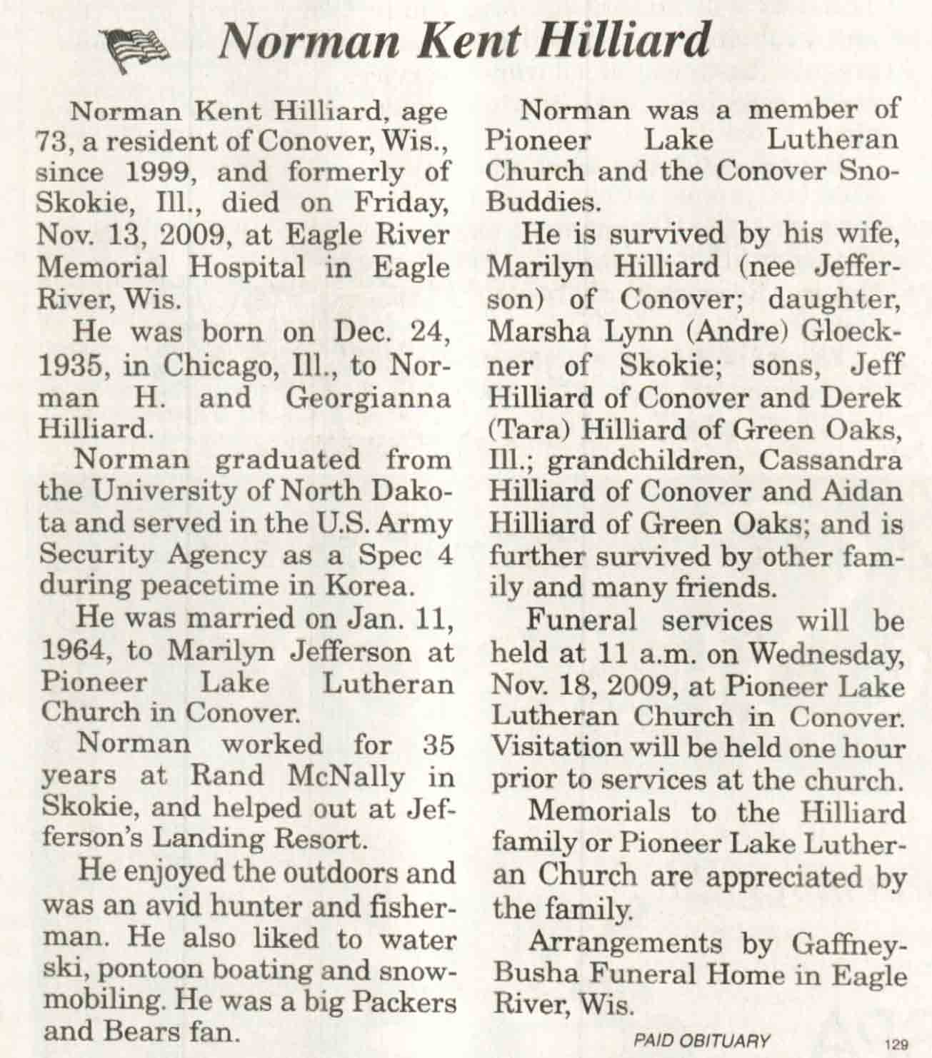 | Coutant | Clark 'Butch' | 08 Jul 1946 | 06 Aug 2009 | V N-R | 12 Aug 2009 | 4A |