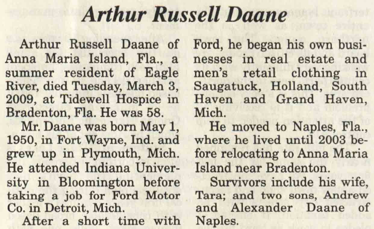 | Daane | Arthur Russell | 01 May 1950 | 03 Mar 2009 | V N-R | 11 Apr 2009 | 4A |