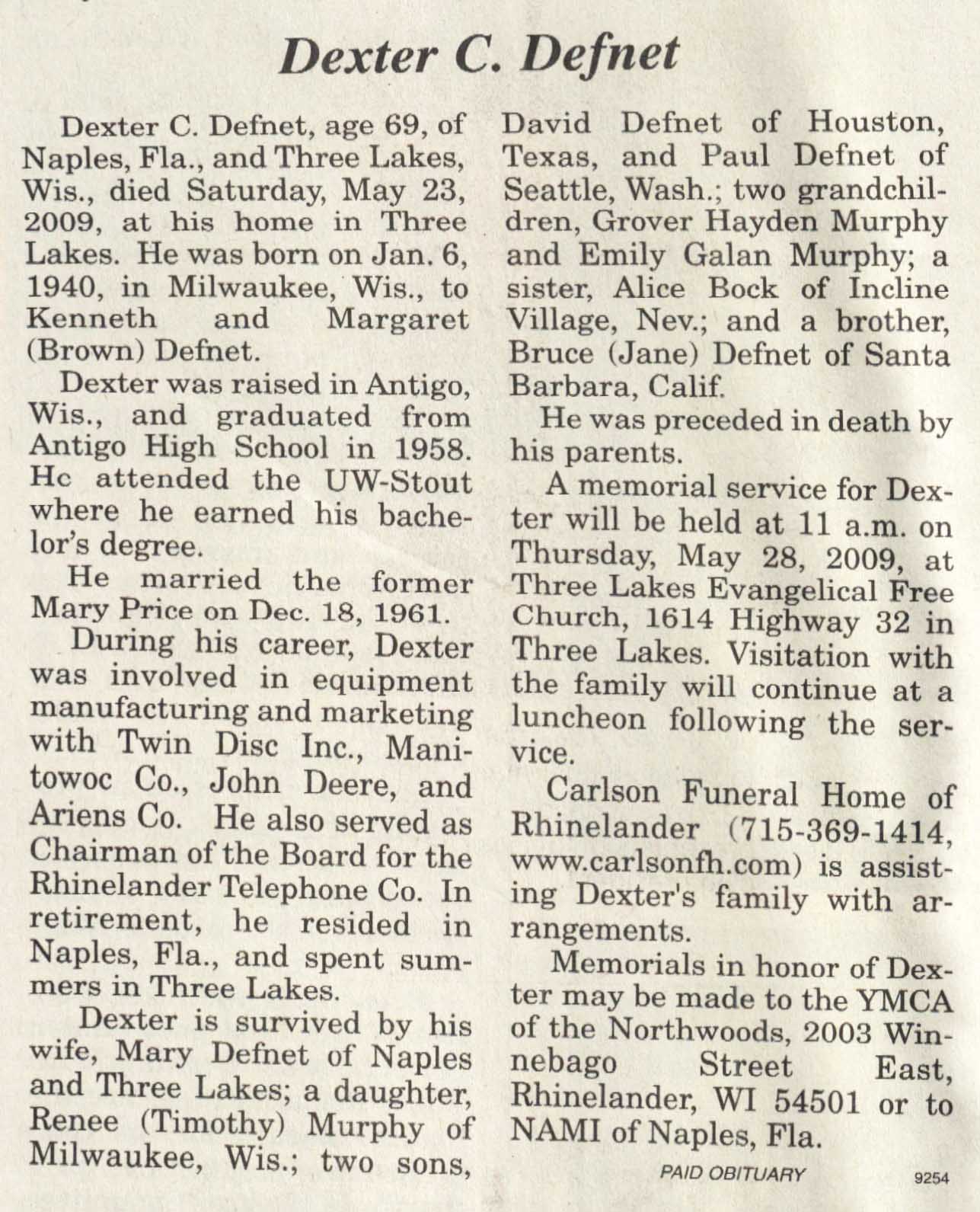 | Defnet | Dexter C | 06 Jan 1940 | 23 May 2009 | V N-R | 27 May 2009 | 4A |