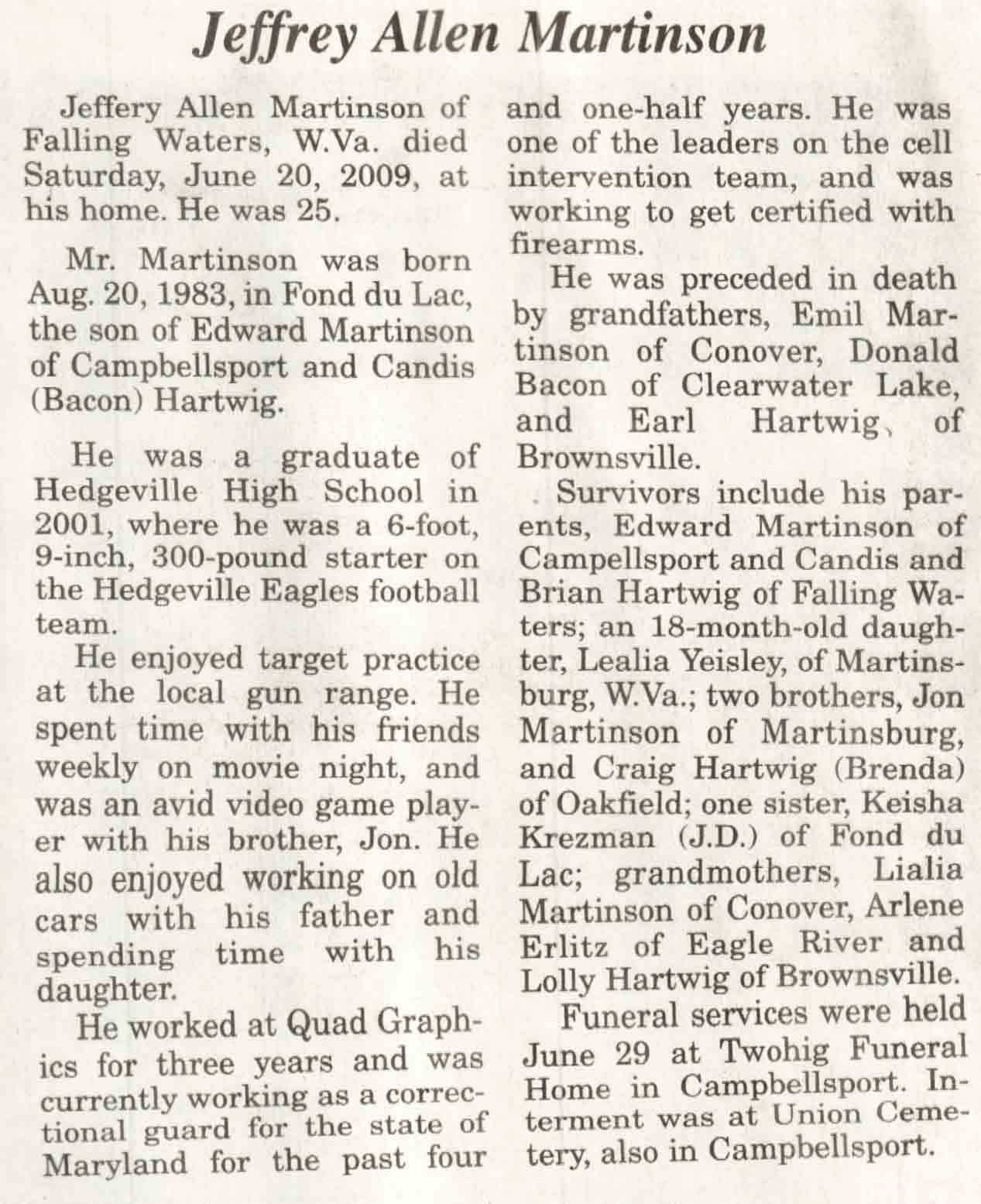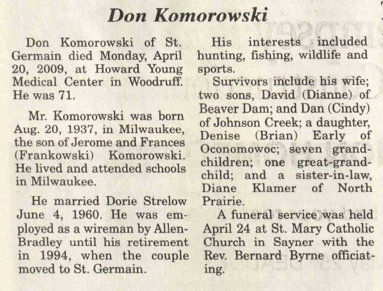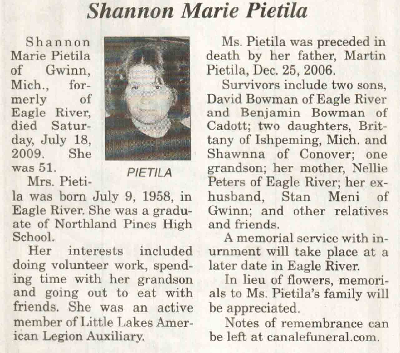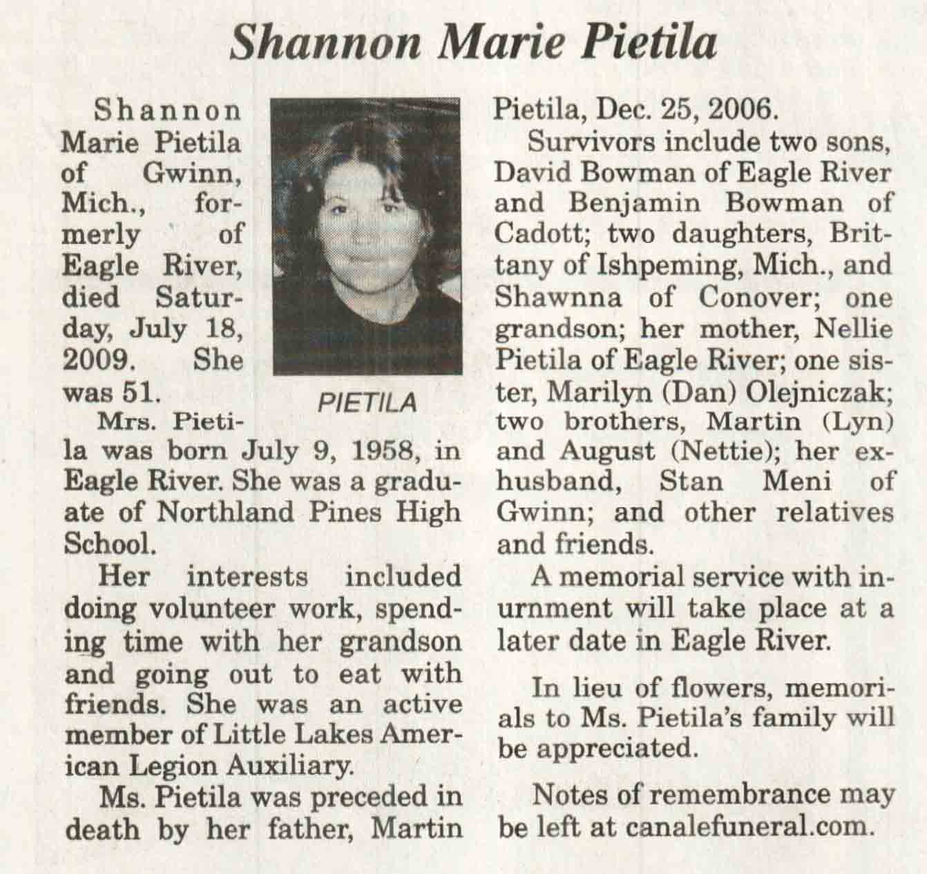 | Tomasoski | Diane V (Bowman) | 21 Apr 1933 | 31 Jul 2009 | V N-R | 05 Aug 2009 | 4A |