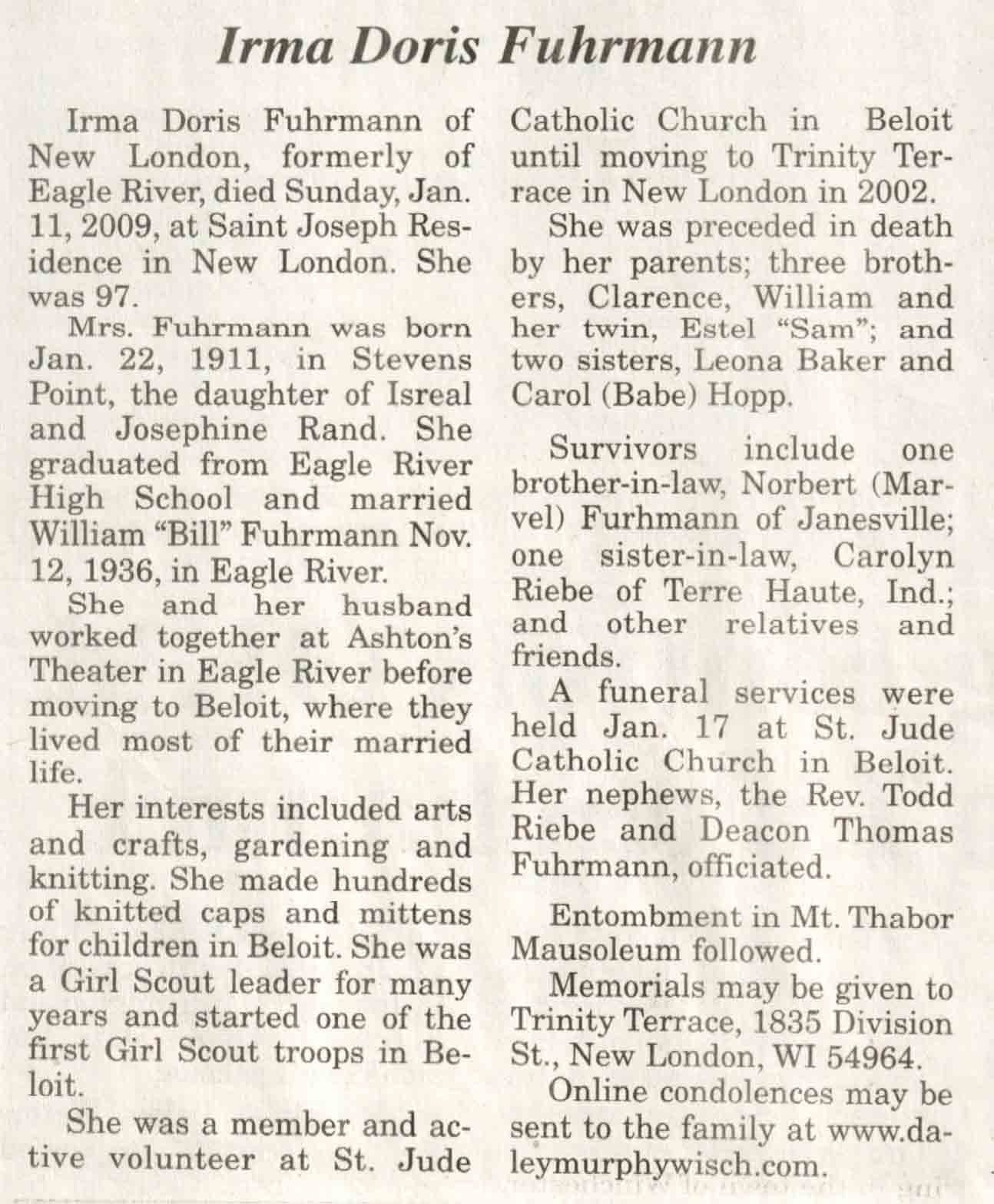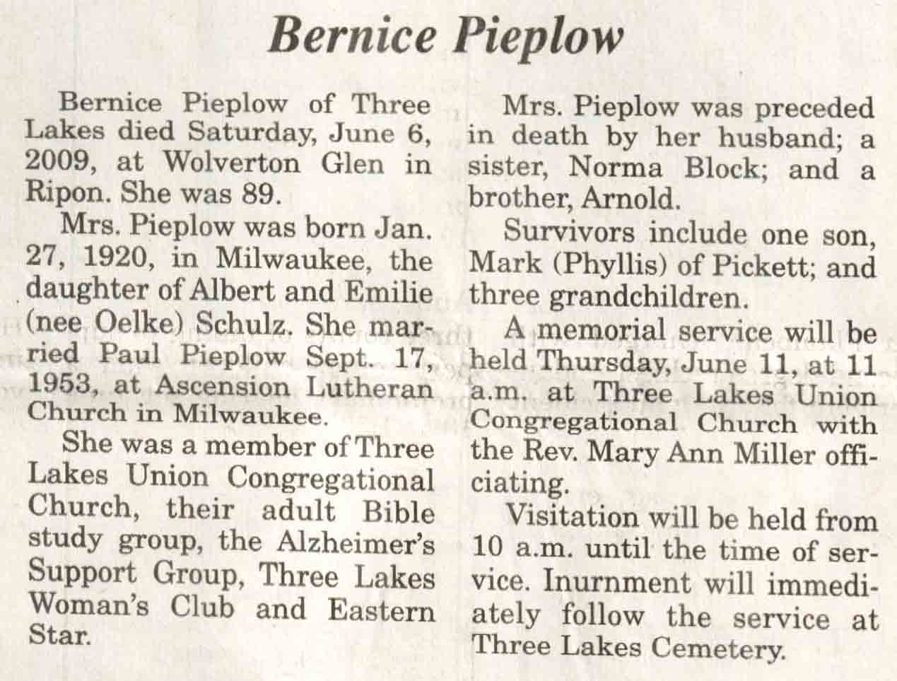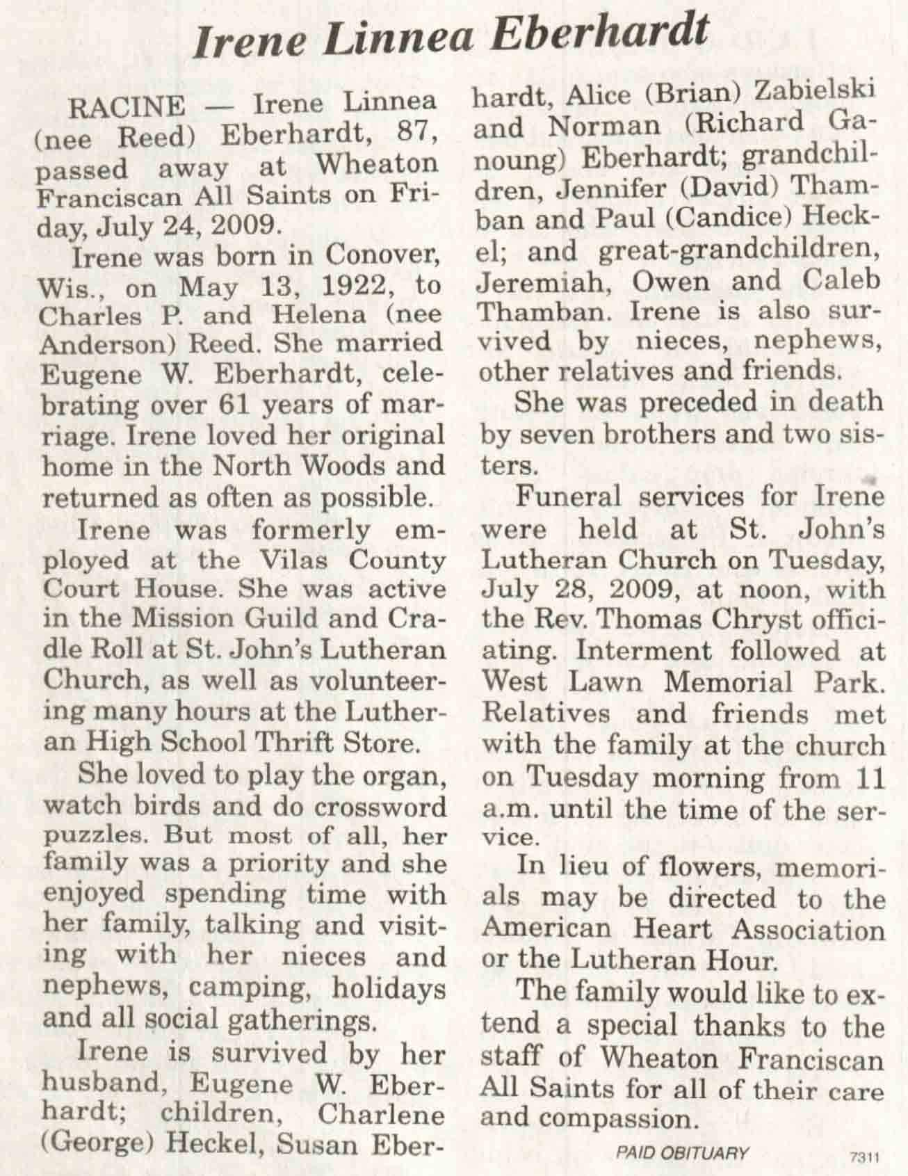 | Tillman | Genevieve (Dewey) | 21 Jul 1917 | 03 Aug 2009 | V N-R | 12 Aug 2009 | 4A |
