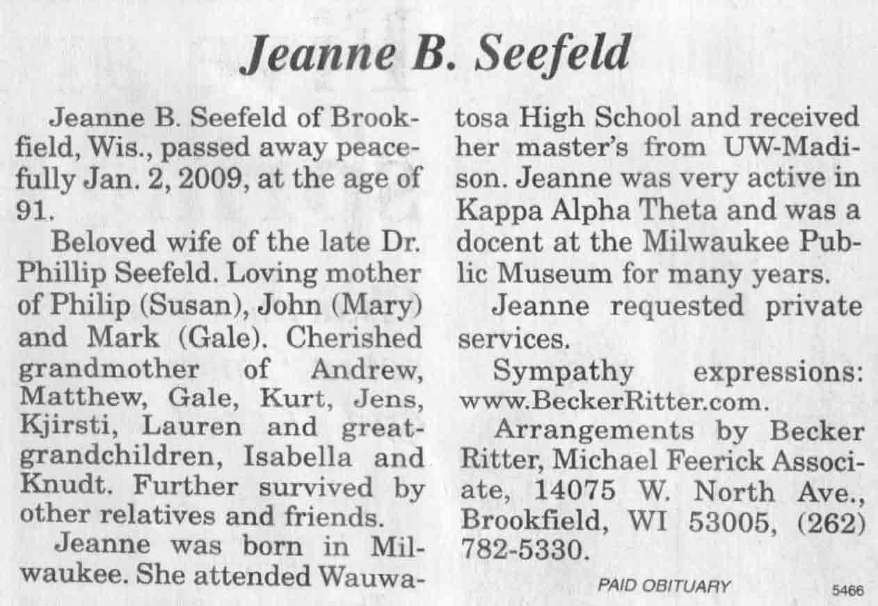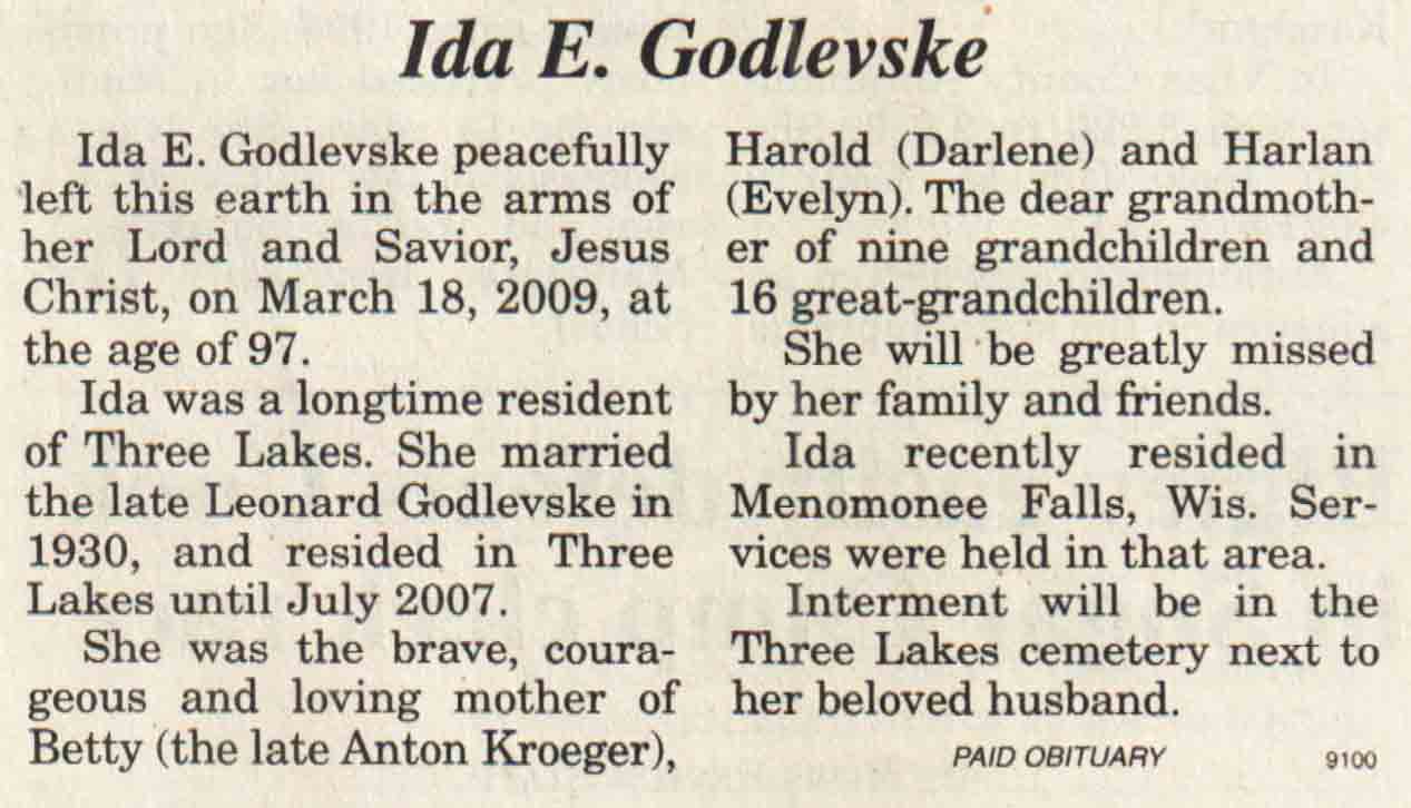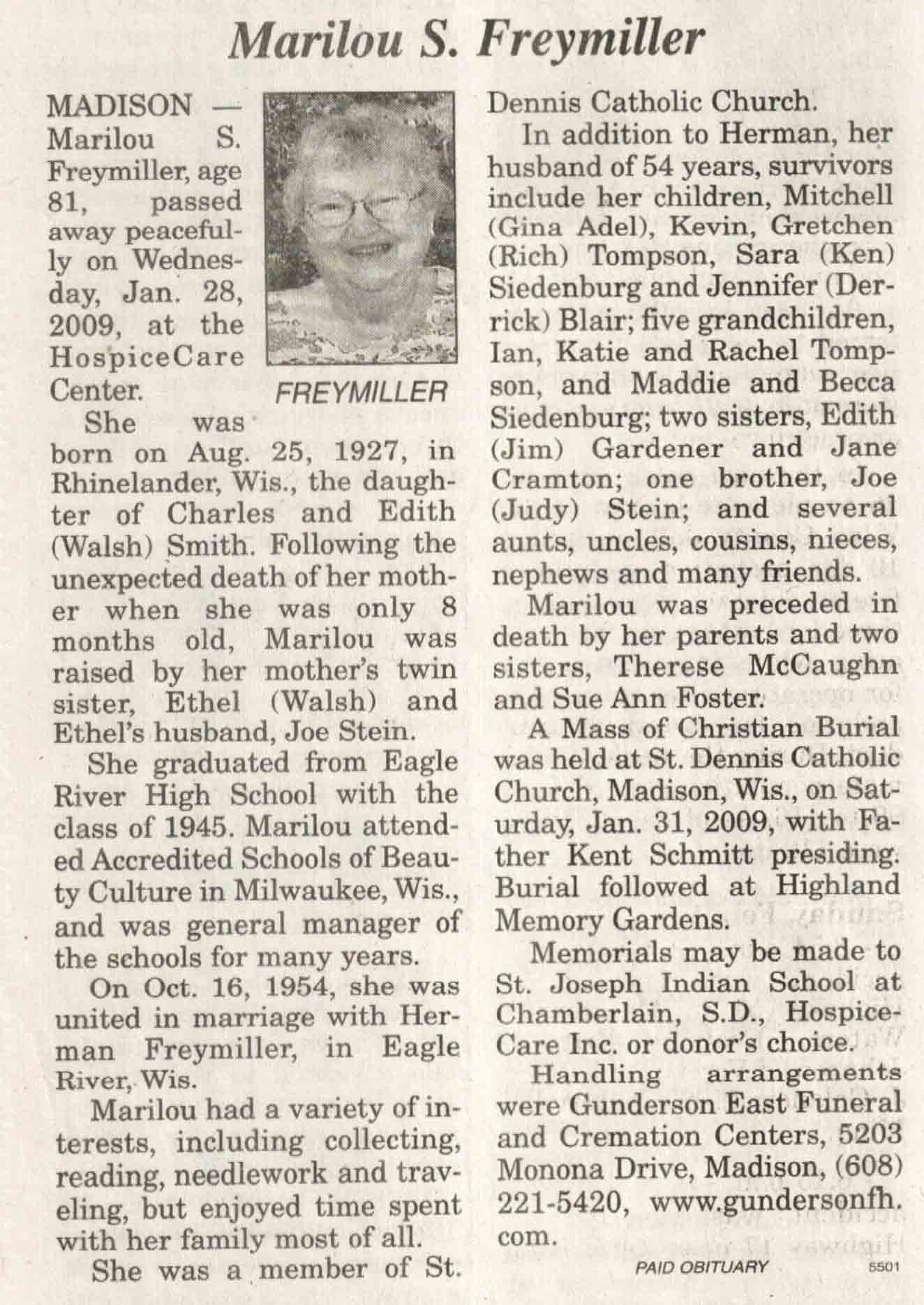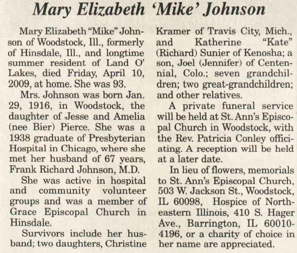 | Tillman | Genevieve (Dewey) | 21 Jul 1917 | 03 Aug 2009 | V N-R | 12 Aug 2009 | 4A |