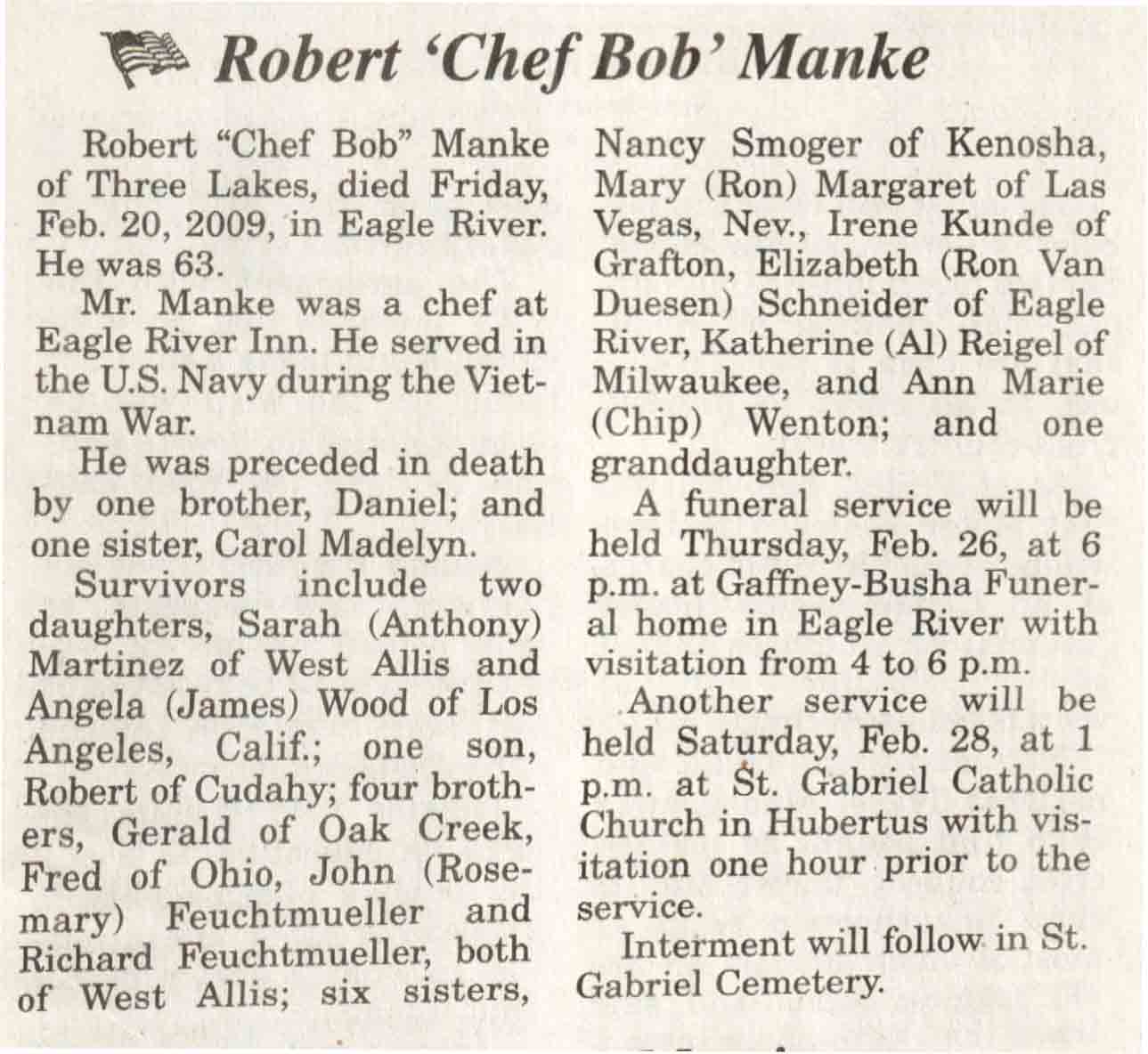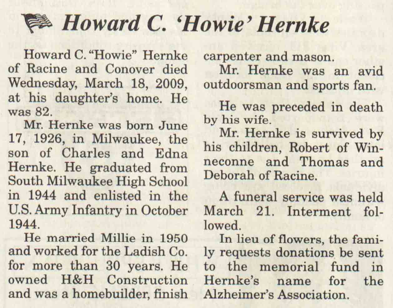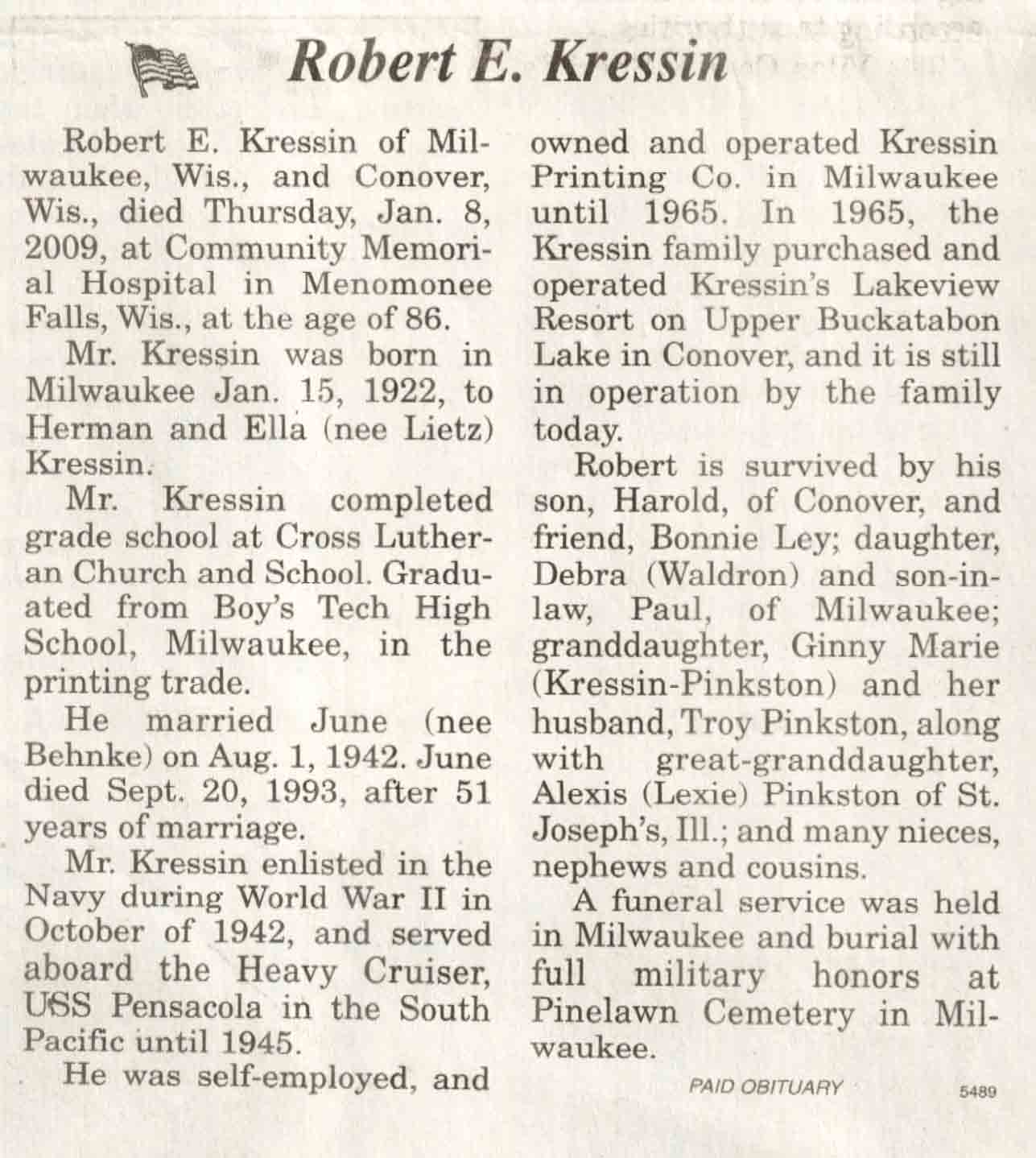 | Schwanke | Robert A 'Bob' | 26 Feb 1932 | 28 Jan 2009 | V N-R | 04 Feb 2009 | 4 |