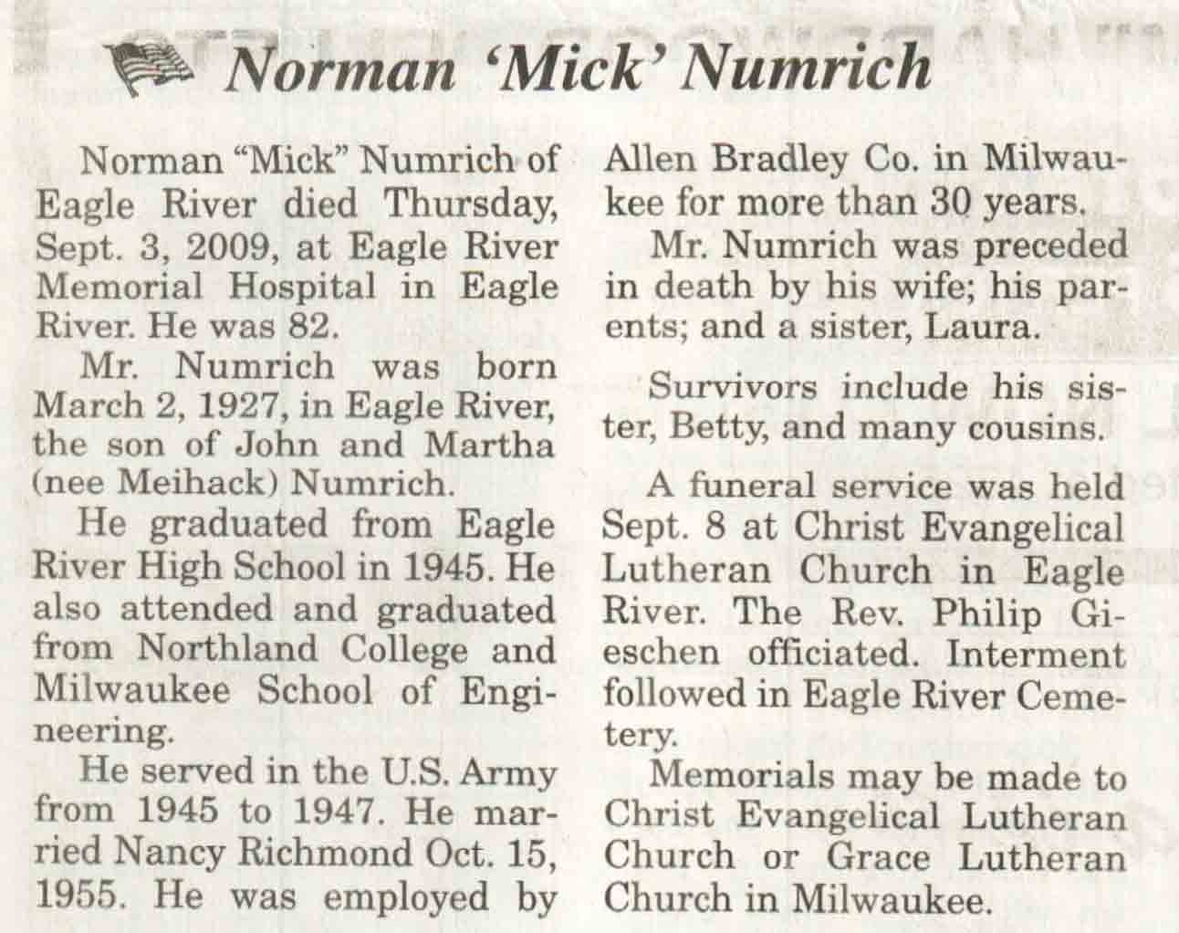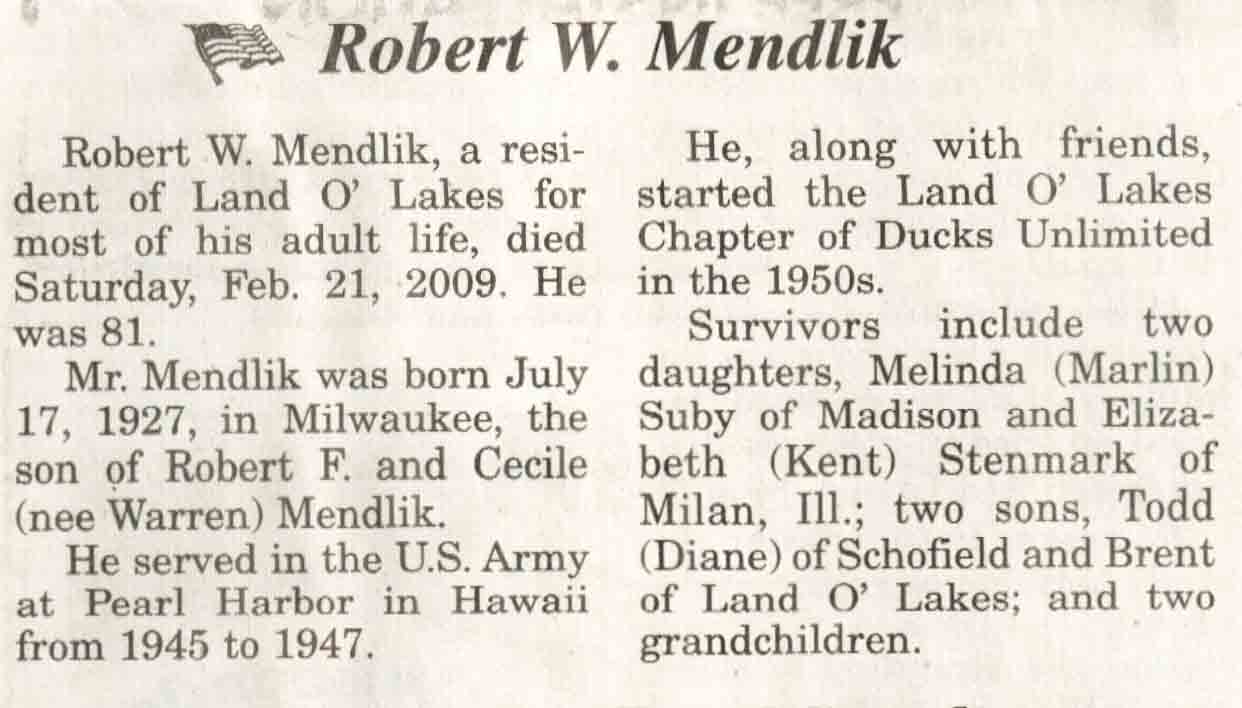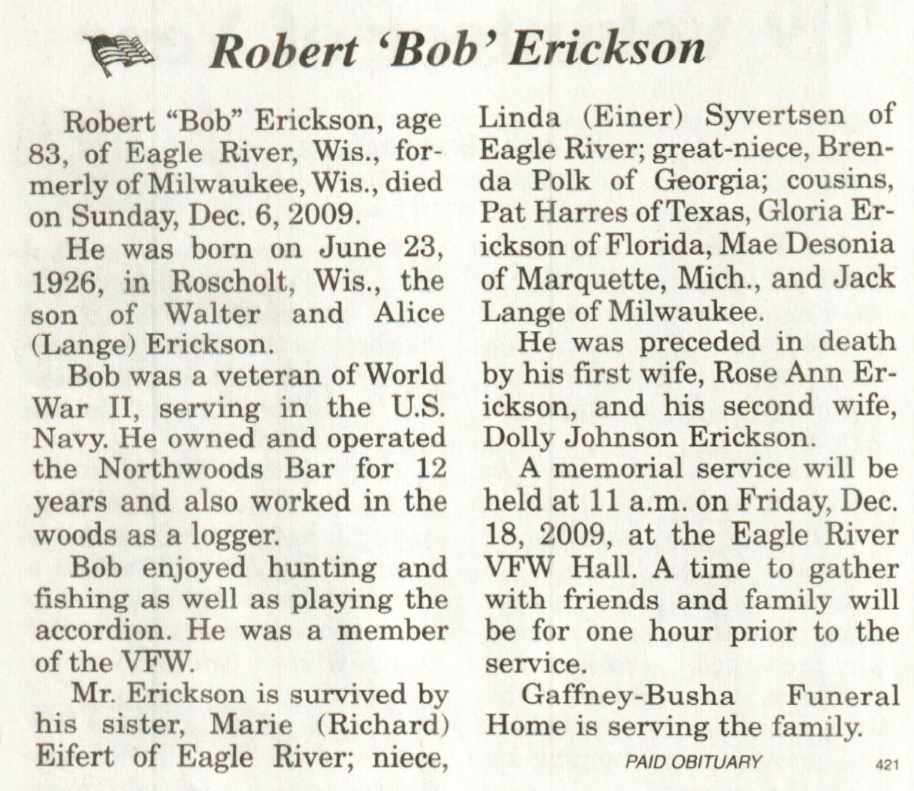 | Schwanke | Robert A 'Bob' | 26 Feb 1932 | 28 Jan 2009 | V N-R | 04 Feb 2009 | 4 |
