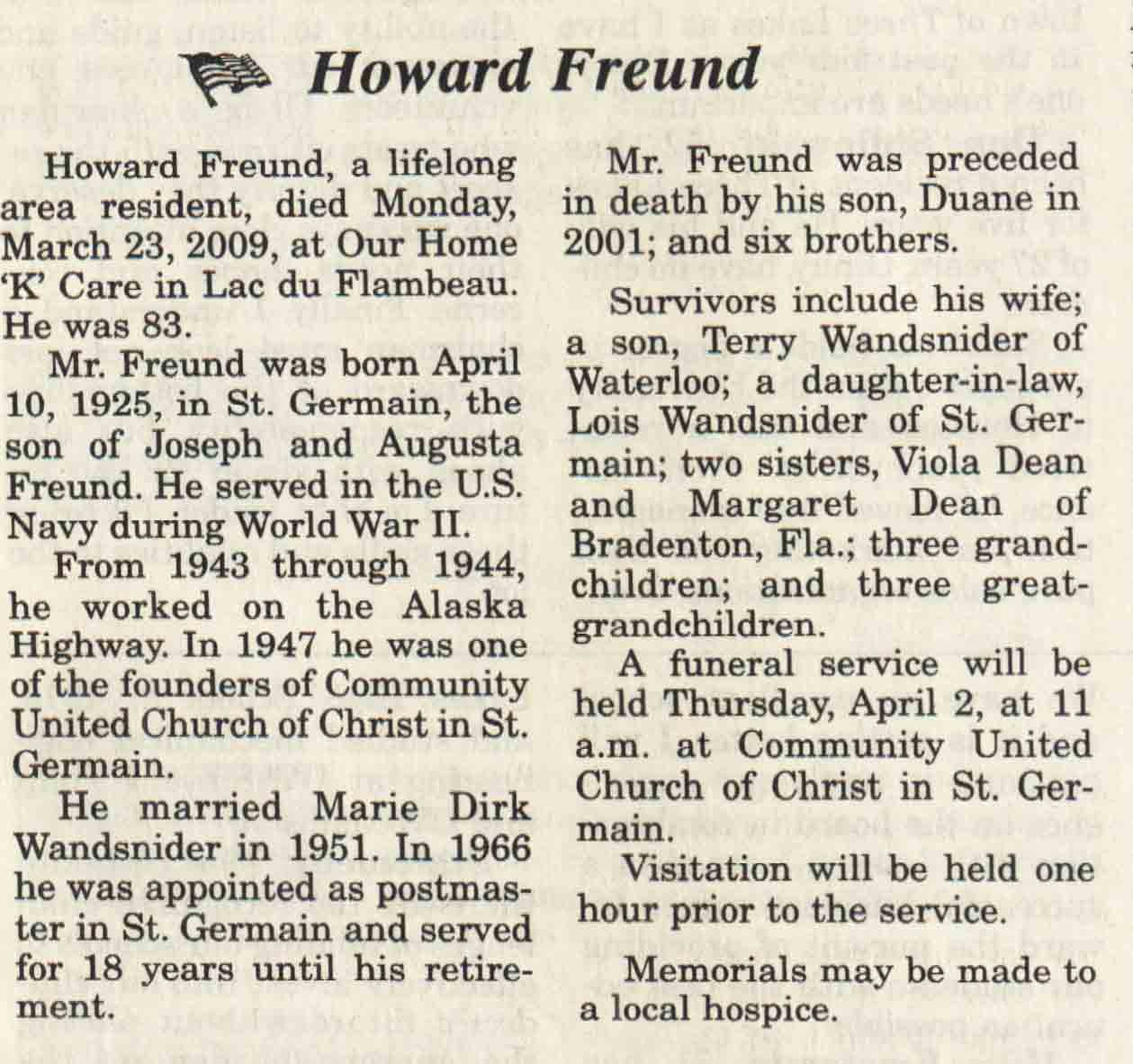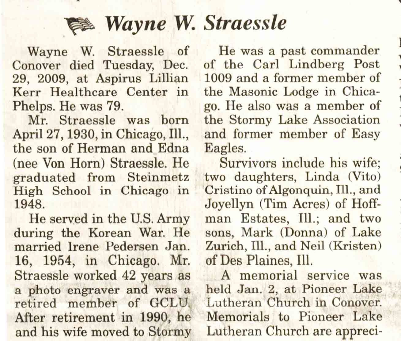 | Straessle | Wayne W | 27 Apr 1930 | 29 Dec 2009 | V N-R | 06 Jan 2010 | 4 |