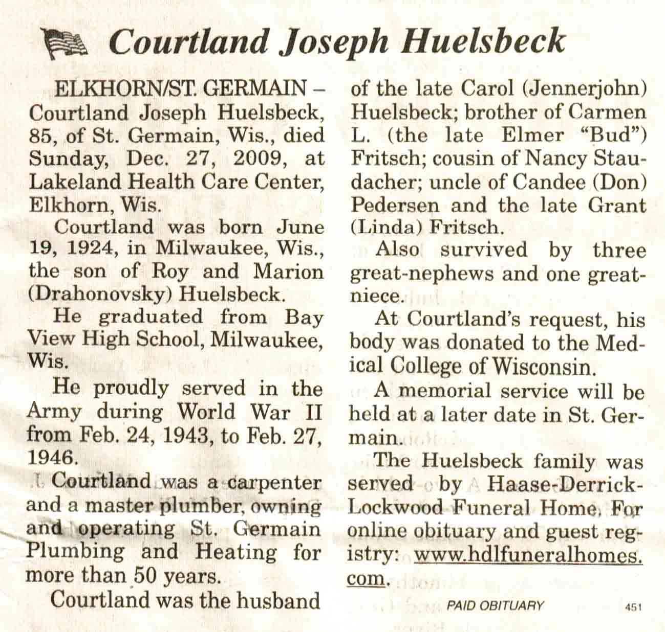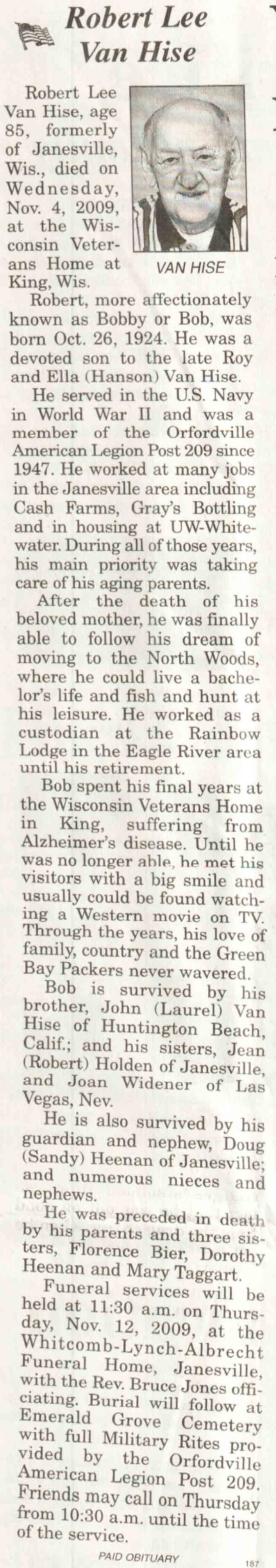 | VanHise | Robert Lee | 26 Oct 1924 | 04 Nov 2009 | V N-R | 11 Nov 2009 | 4A |