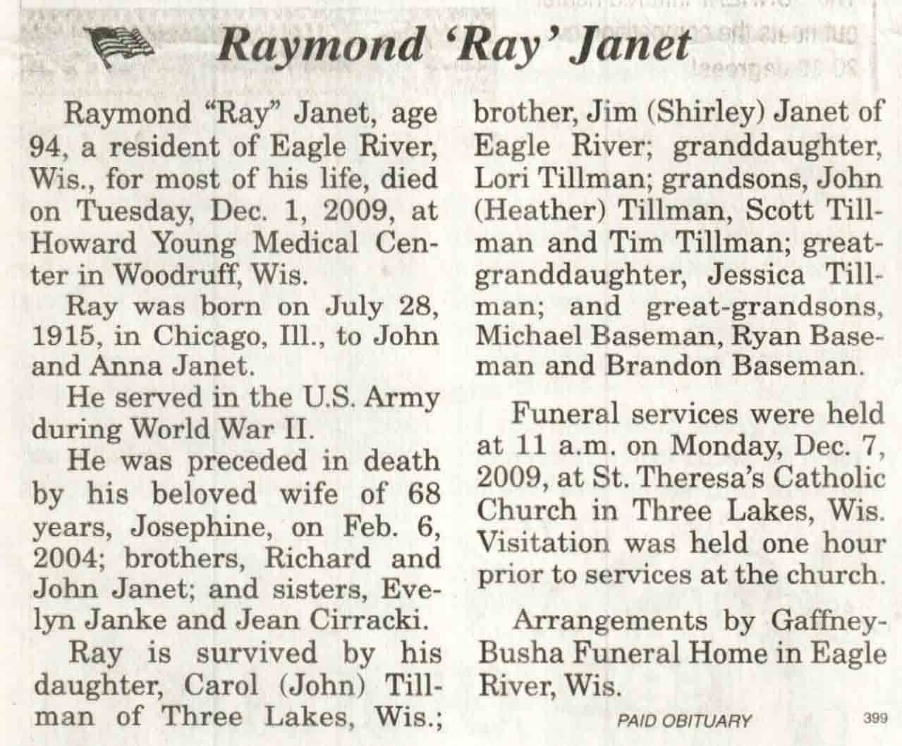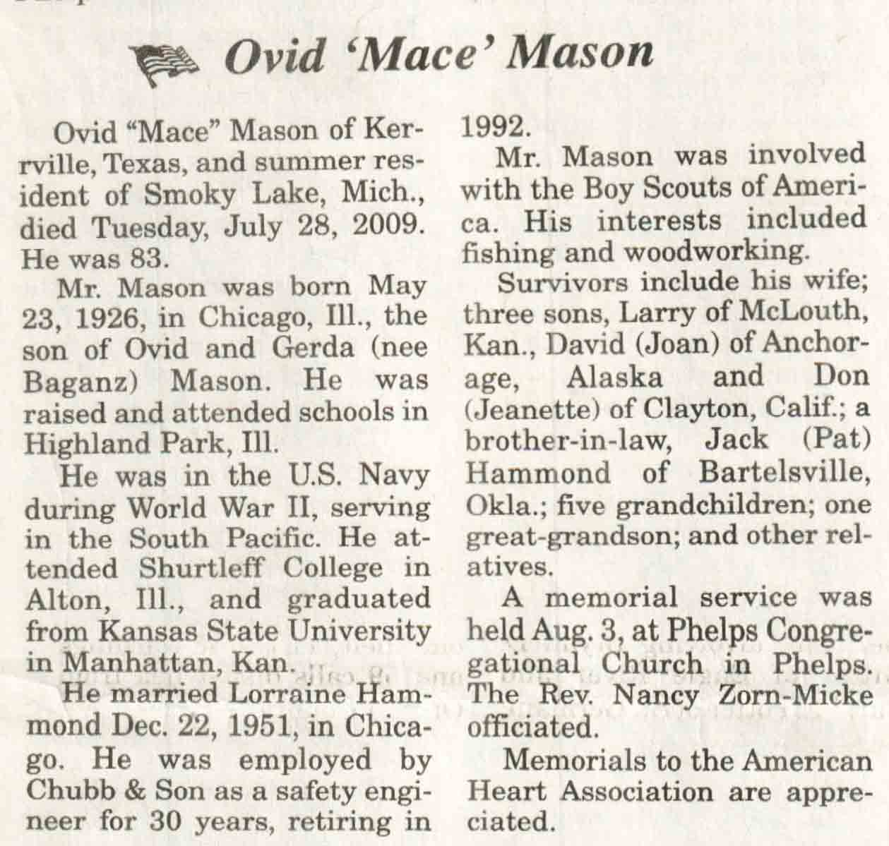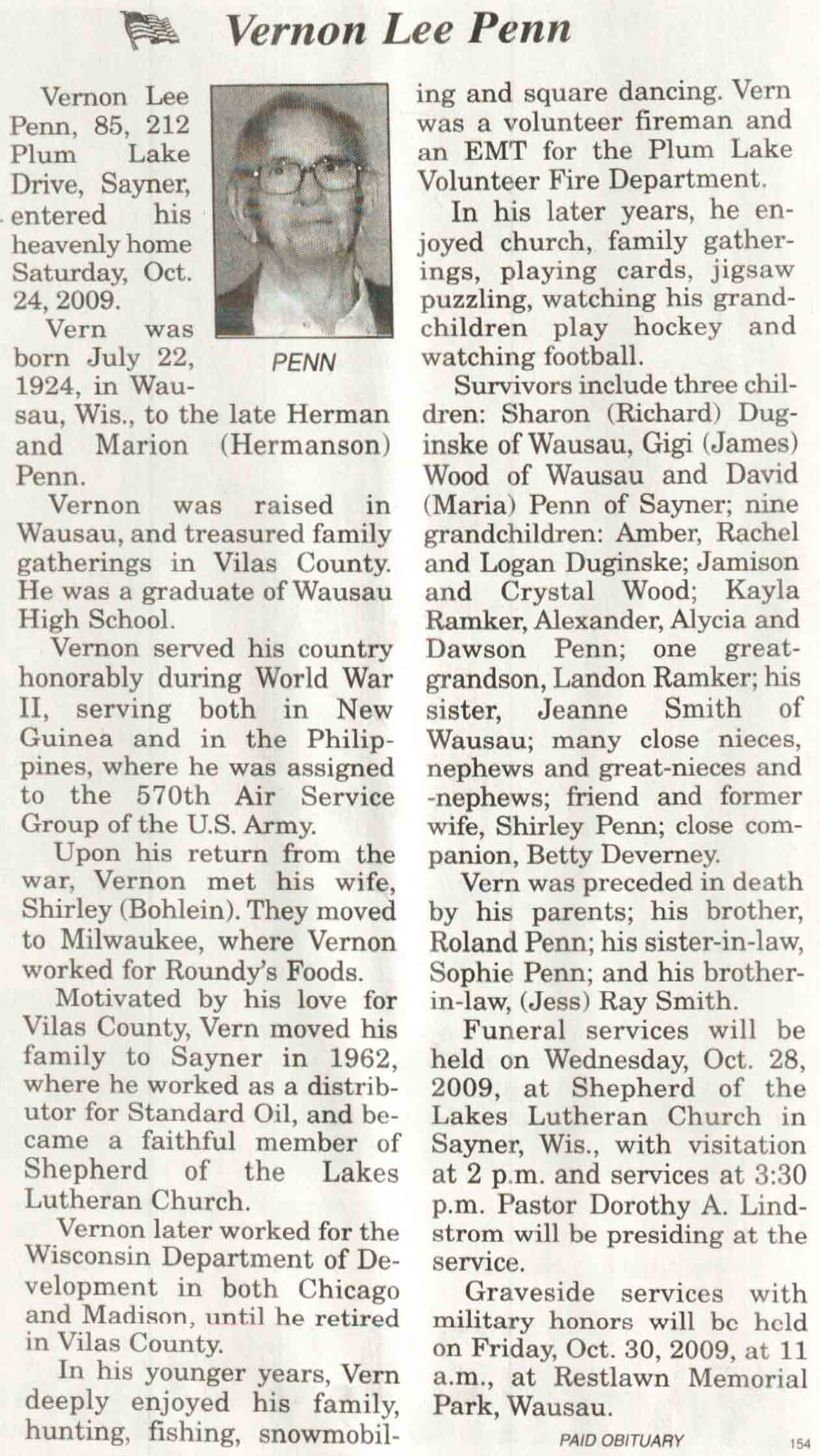 | Sauvola | Jacob 'Jake' | 14 Nov 1933 | 22 Nov 2009 | V N-R | 25 Nov 2009 | 4A |