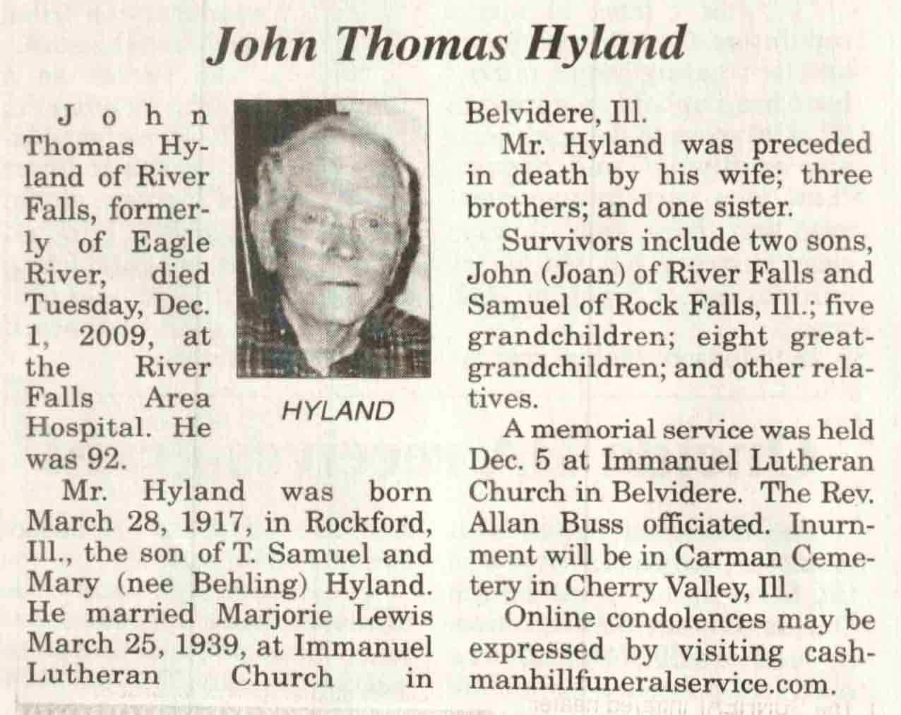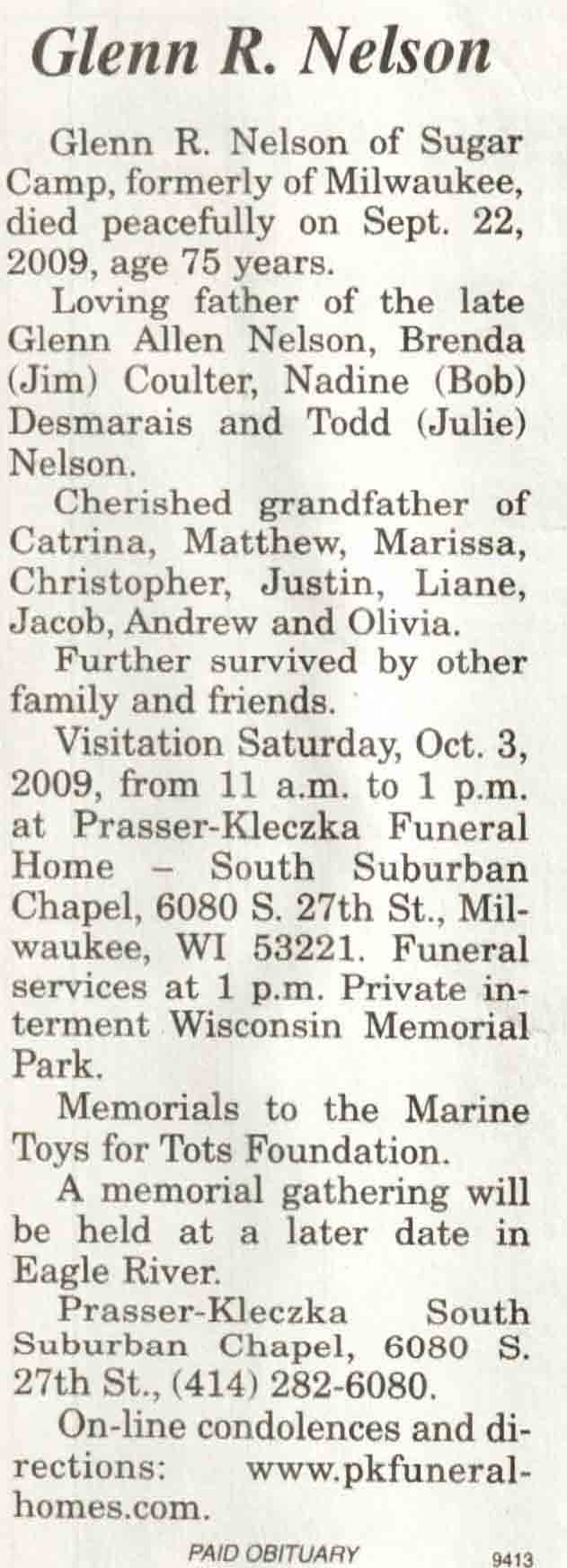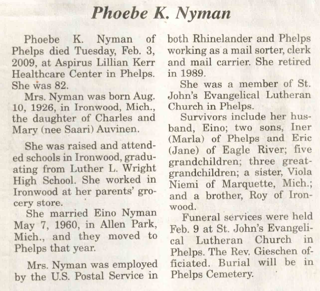 | Sauvola | Jacob 'Jake' | 14 Nov 1933 | 22 Nov 2009 | V N-R | 25 Nov 2009 | 4A |