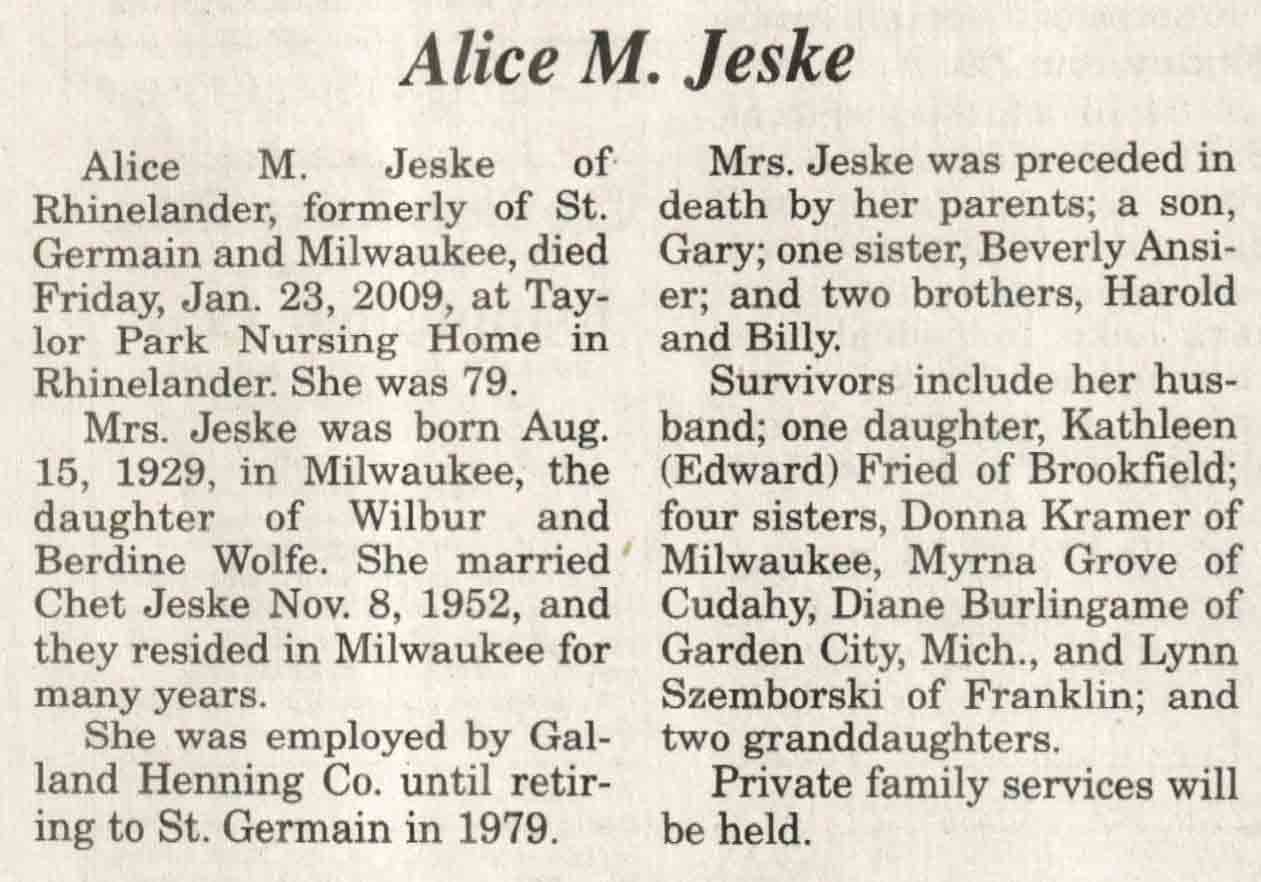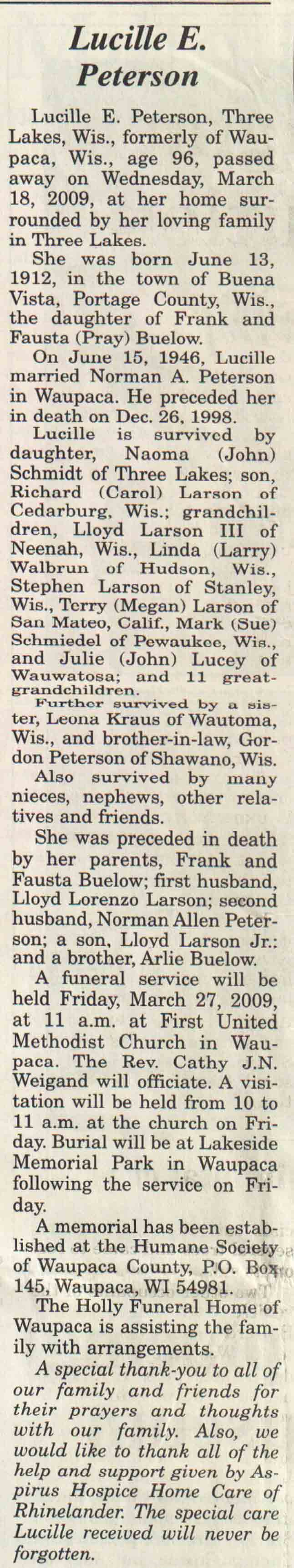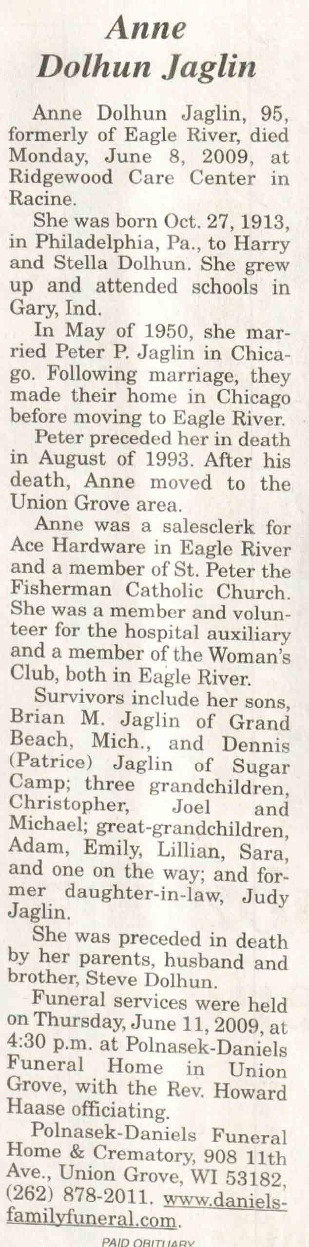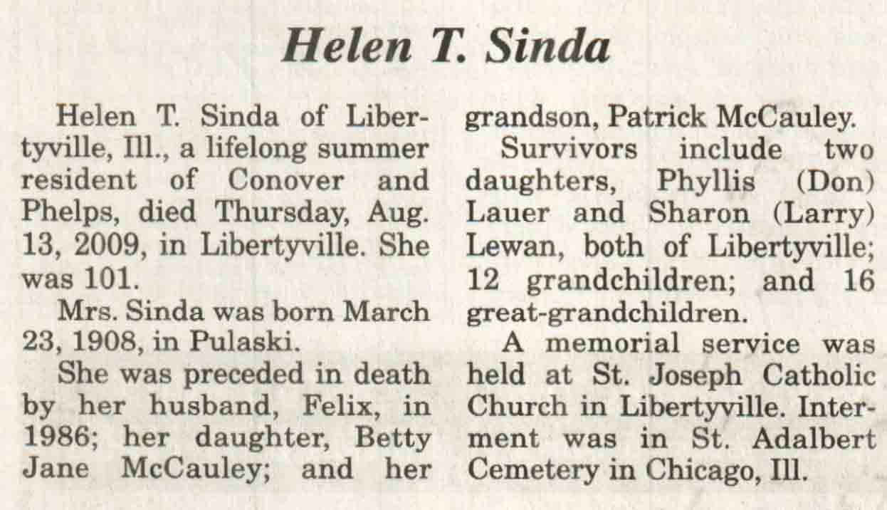 | Polarski | Lillian (Anderson) | 30 Jun 1923 | 07 Jan 2009 | V N-R | 14 Jan 2009 | 4 |