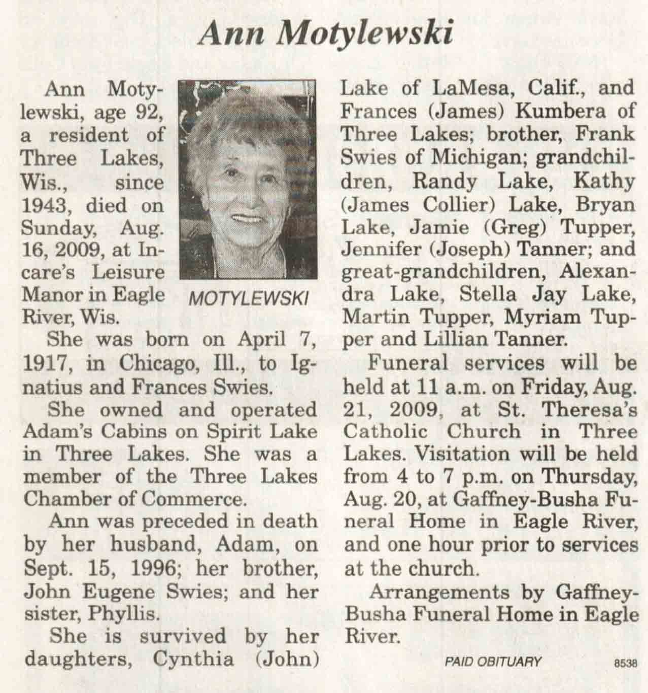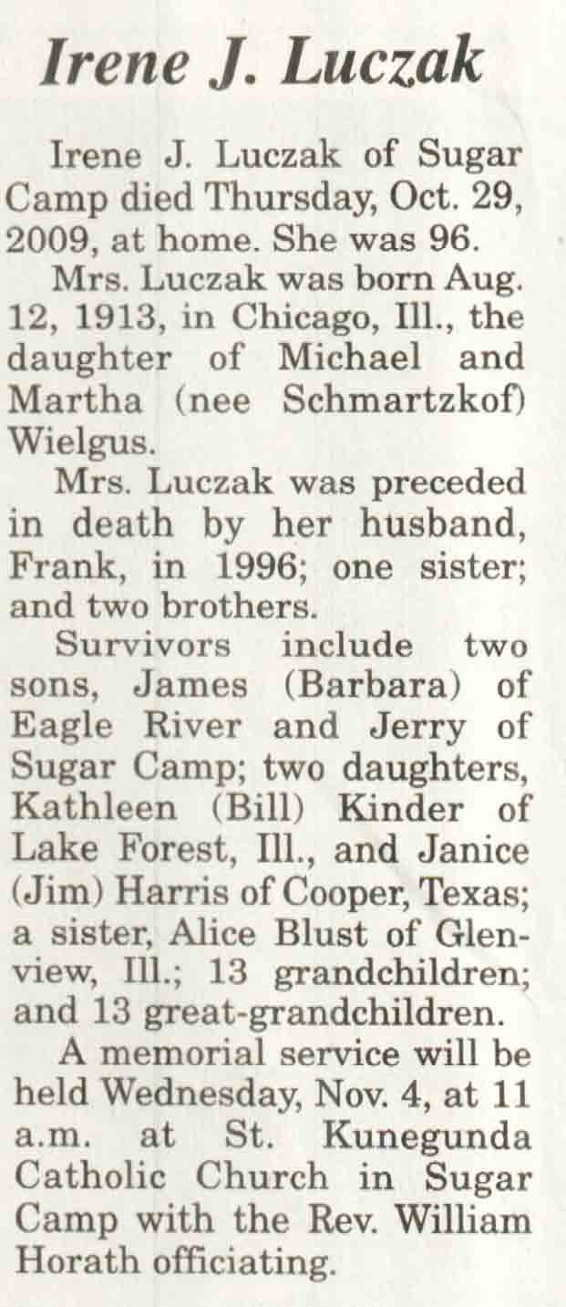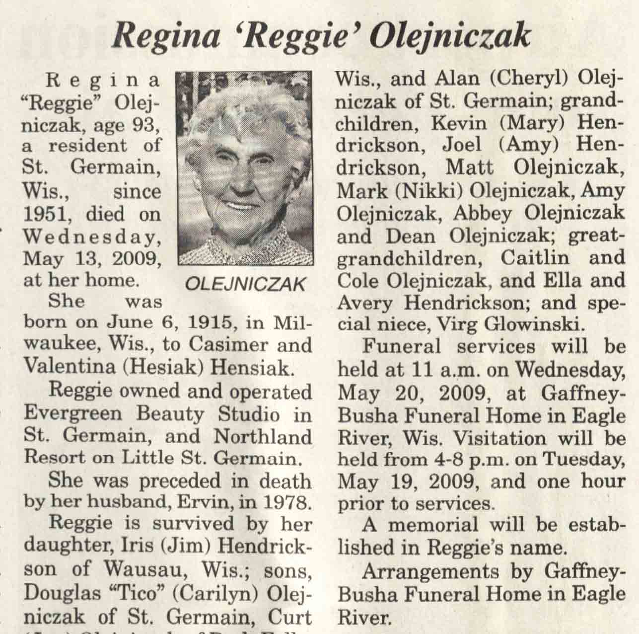 | Polarski | Lillian (Anderson) | 30 Jun 1923 | 07 Jan 2009 | V N-R | 14 Jan 2009 | 4 |