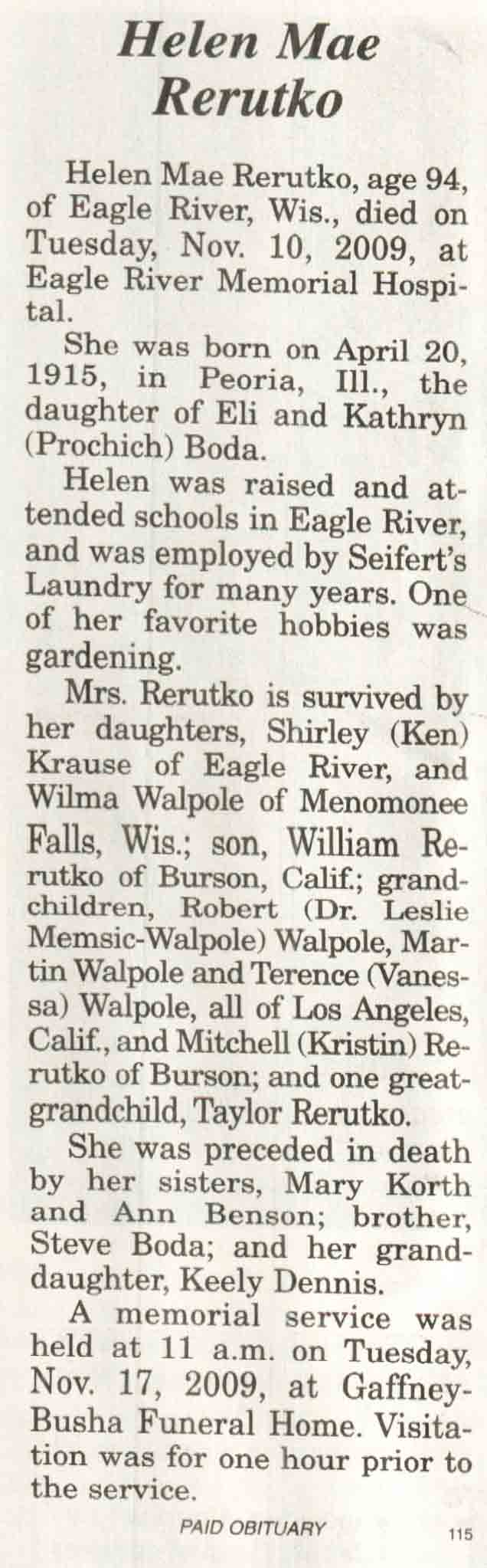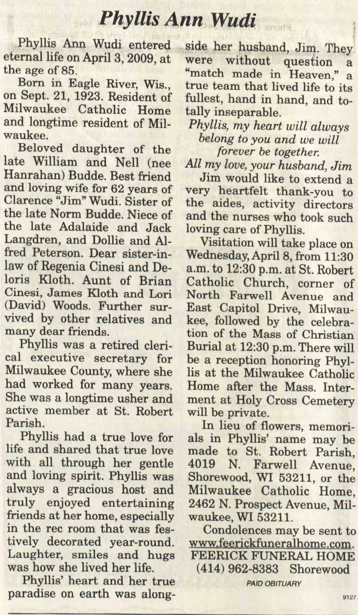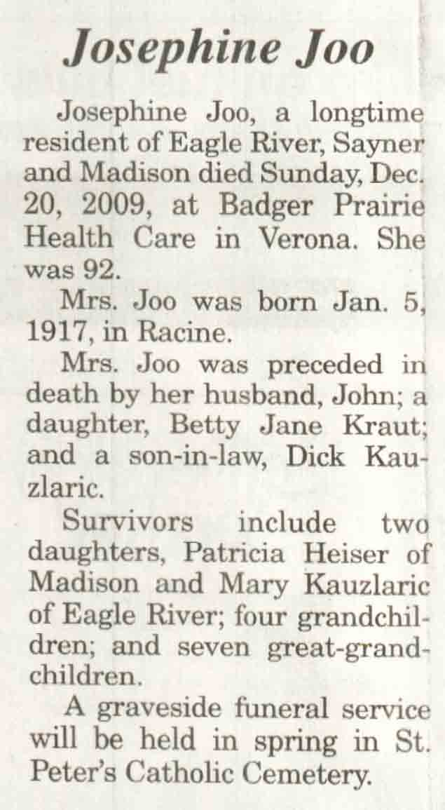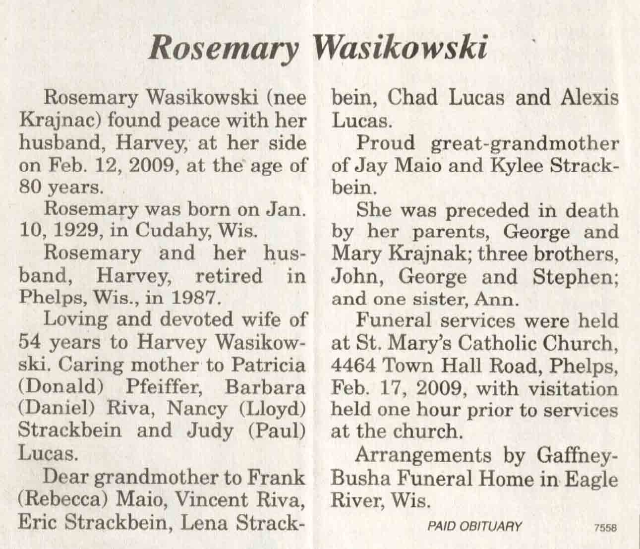 | Wasikowski | Rosemary (Krajnak) | 10 Jan 1929 | 12 Feb 2009 | V N-R | 18 Feb 2009 | 4A |