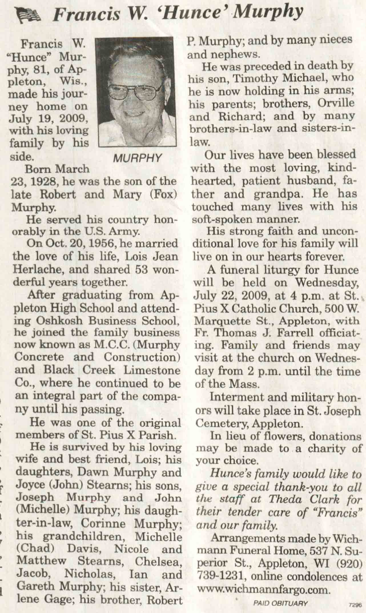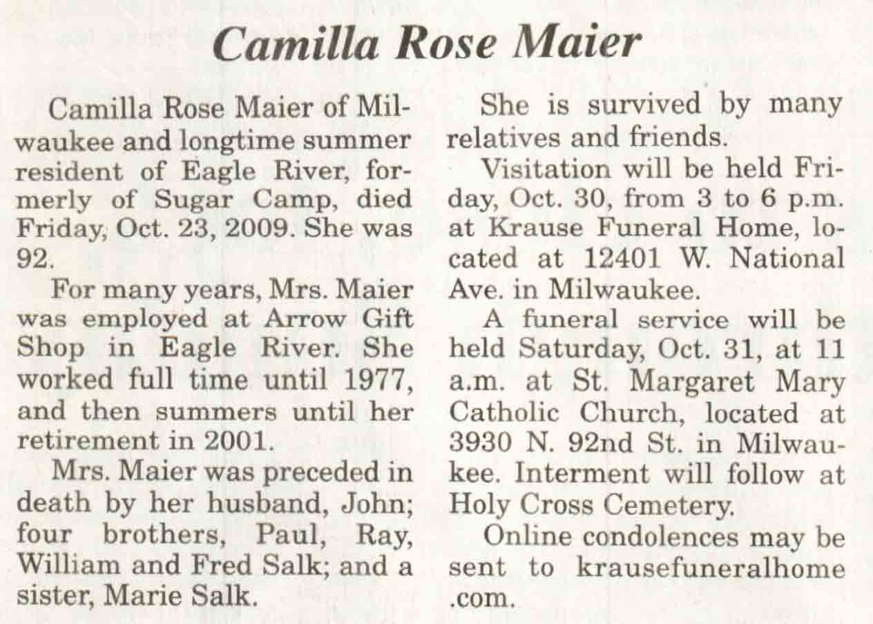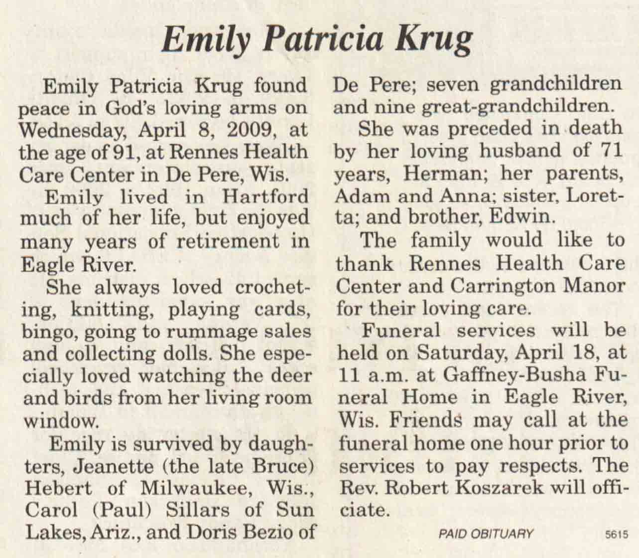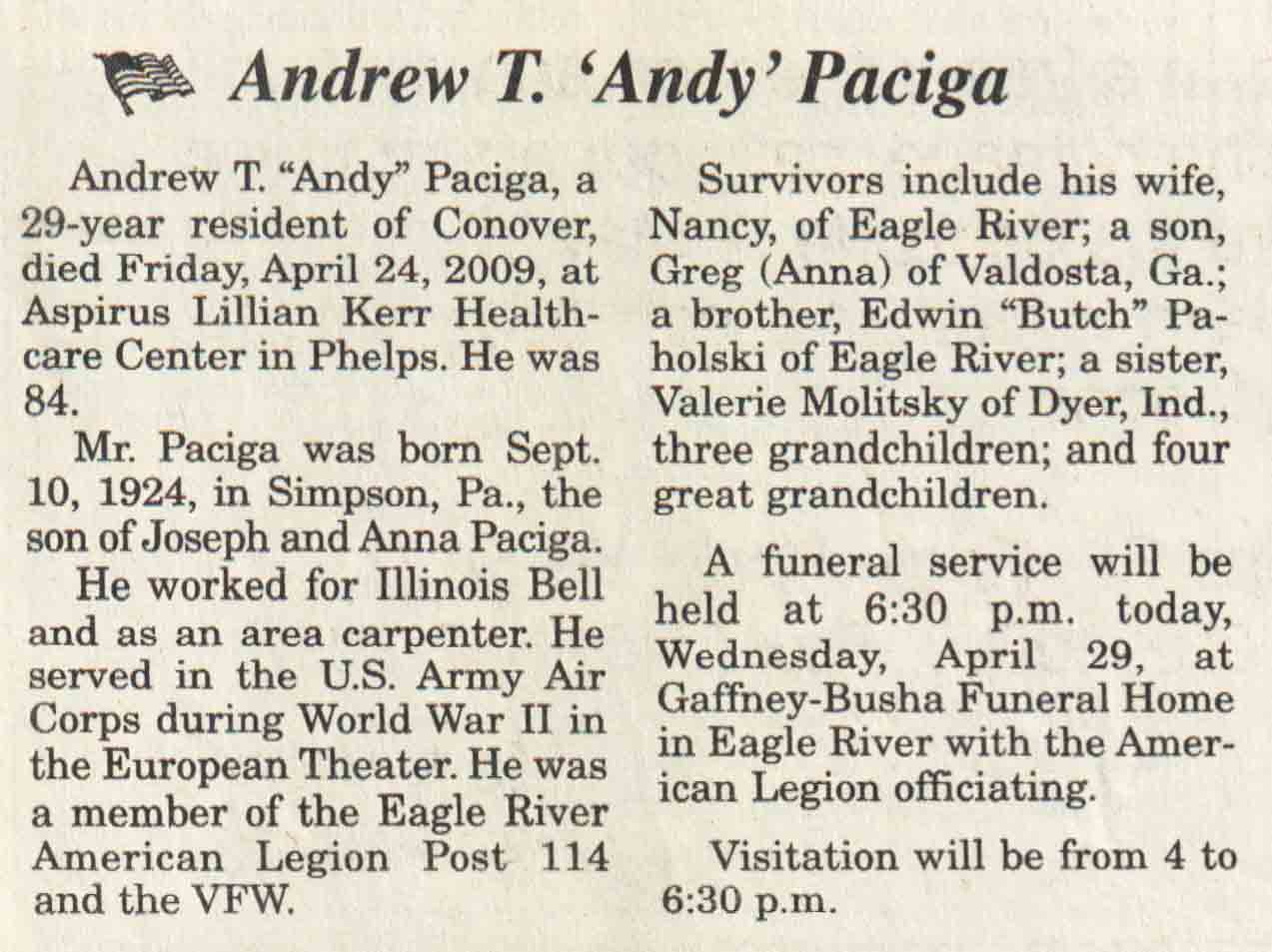 | Wasikowski | Rosemary (Krajnak) | 10 Jan 1929 | 12 Feb 2009 | V N-R | 18 Feb 2009 | 4A |