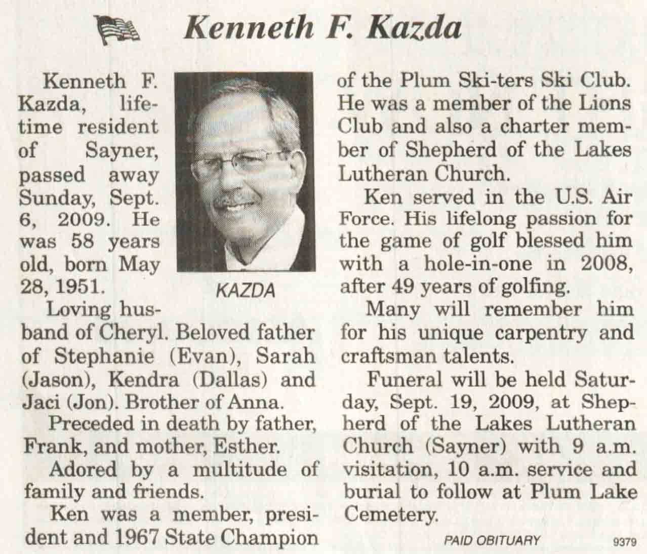 | Rantanen | Brian R | 09 Sep 1952 | 19 Oct 2009 | V N-R | 28 Oct 2009 | 4A |