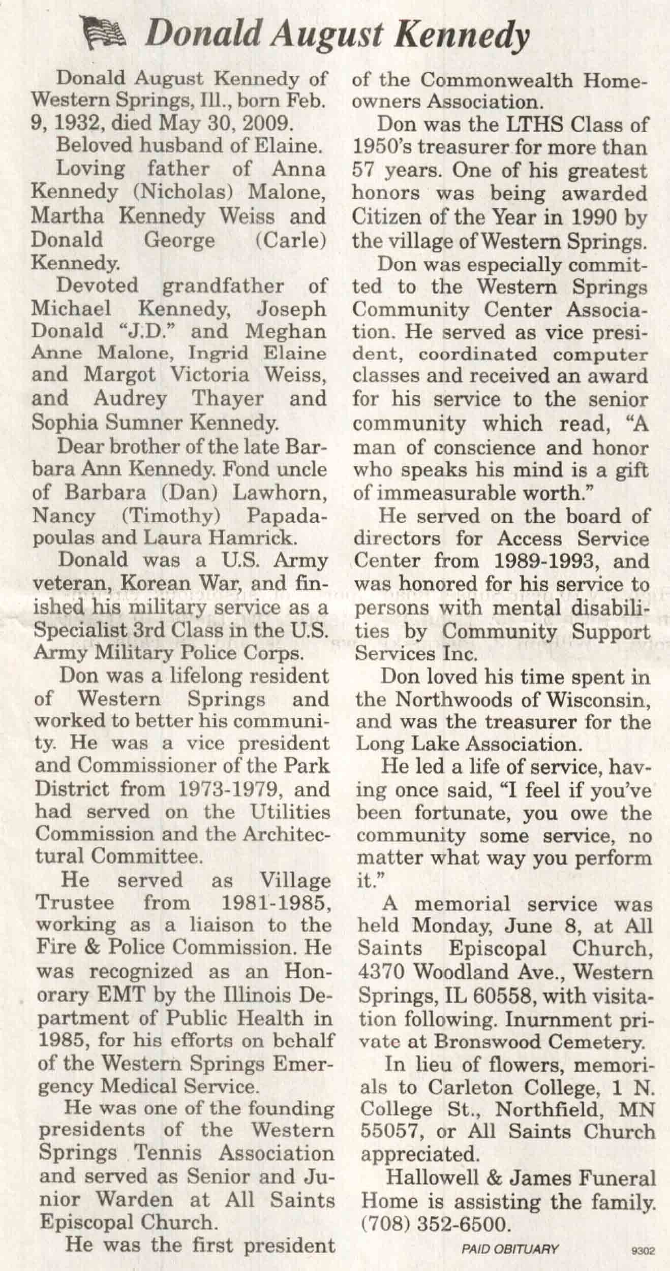 | Collins | James D | 20 Jul 1936 | 08 Jun 2009 | V N-R | 17 Jun 2009 | 4A |