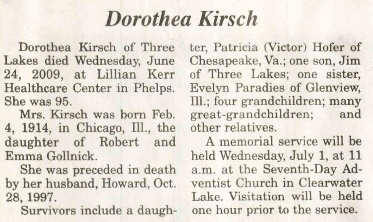 | Dean | Viola E (Freund) | 1915 | 17 Sep 2009 | V N-R | 23 Sep 2009 | 4A |