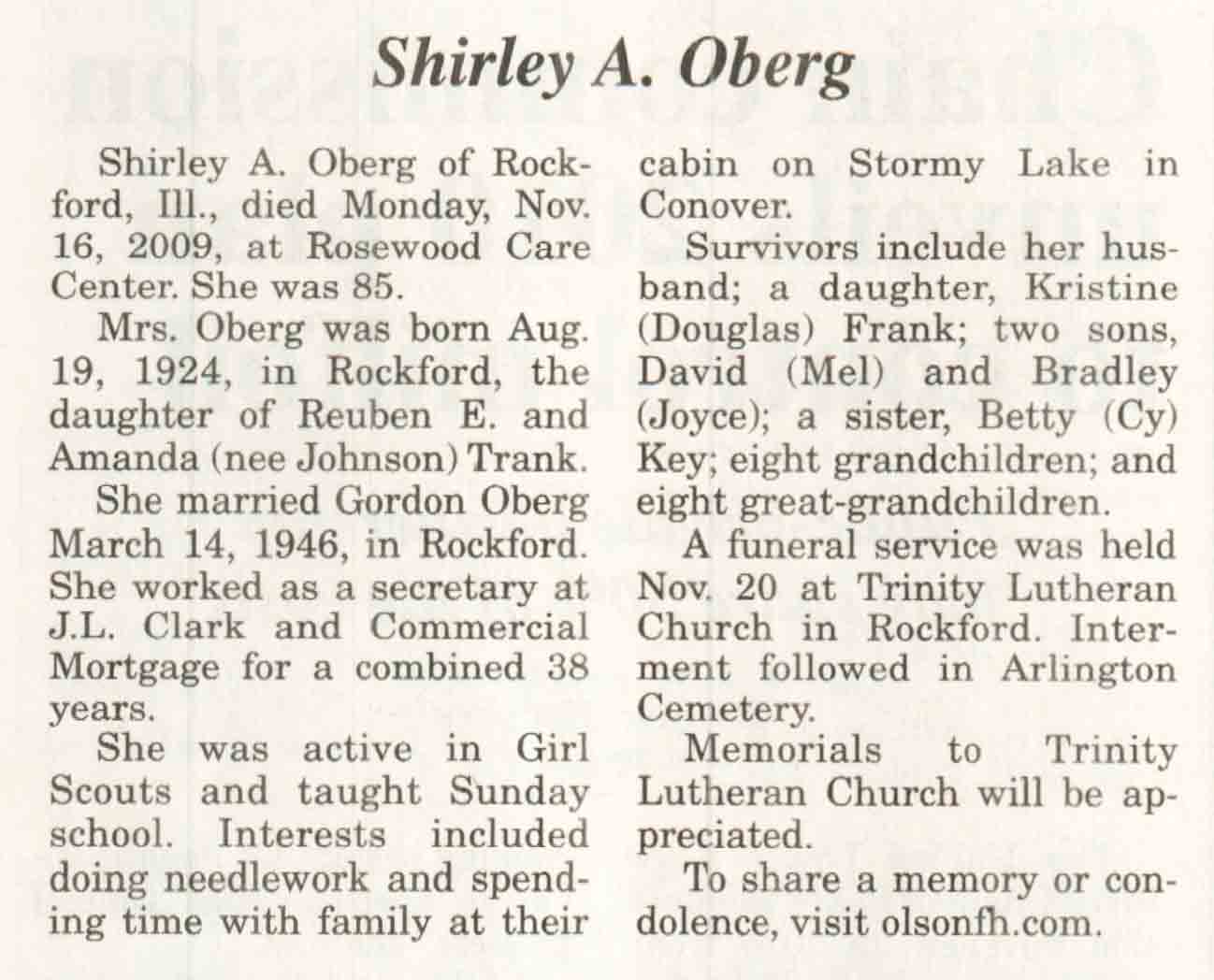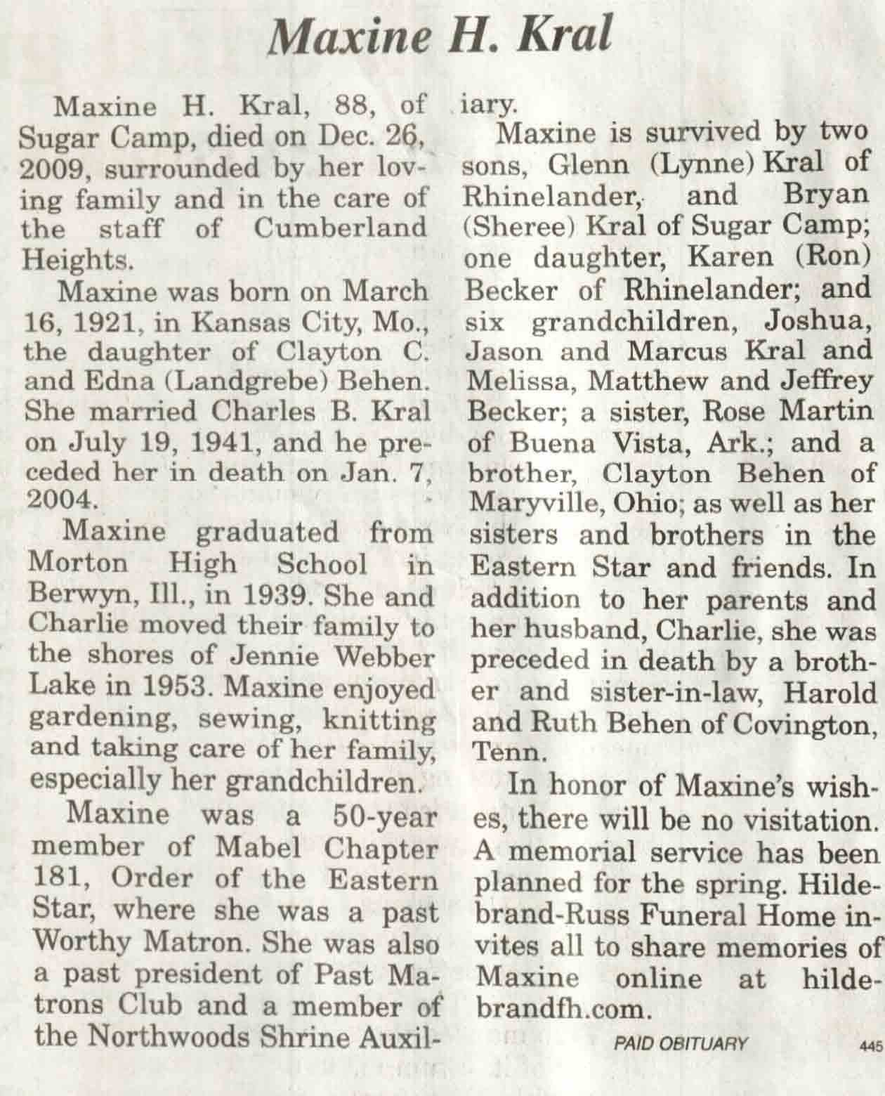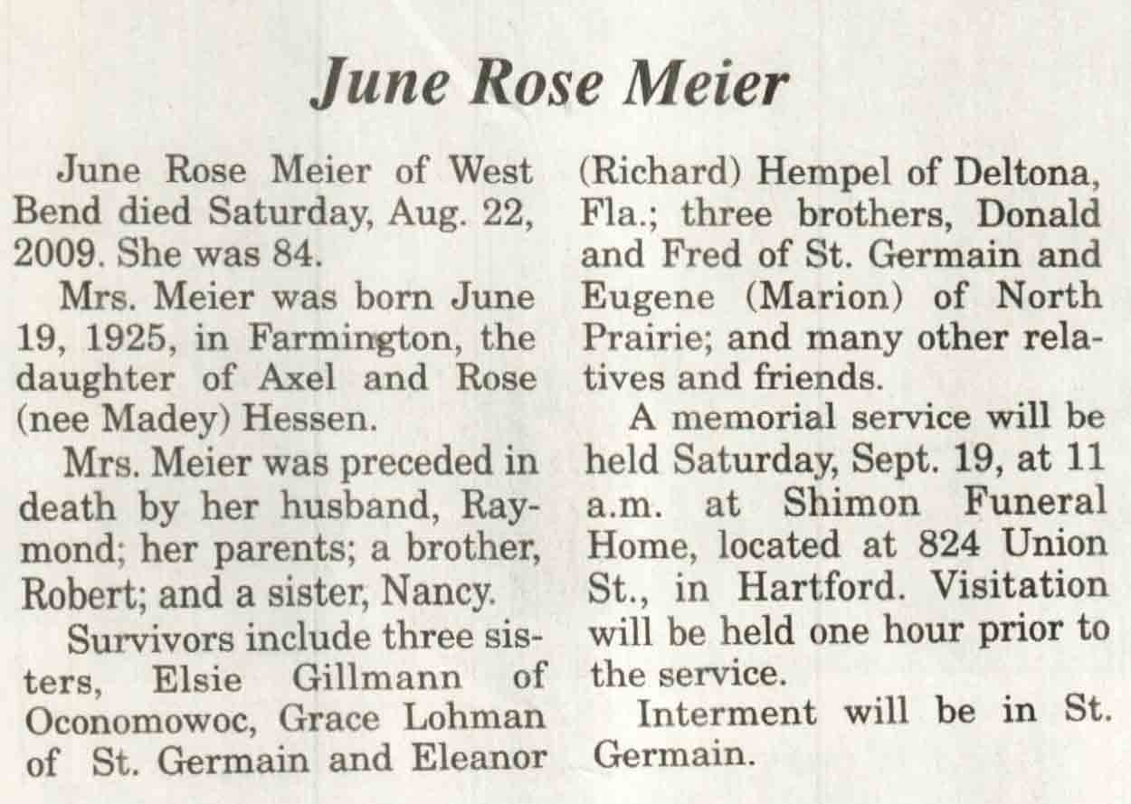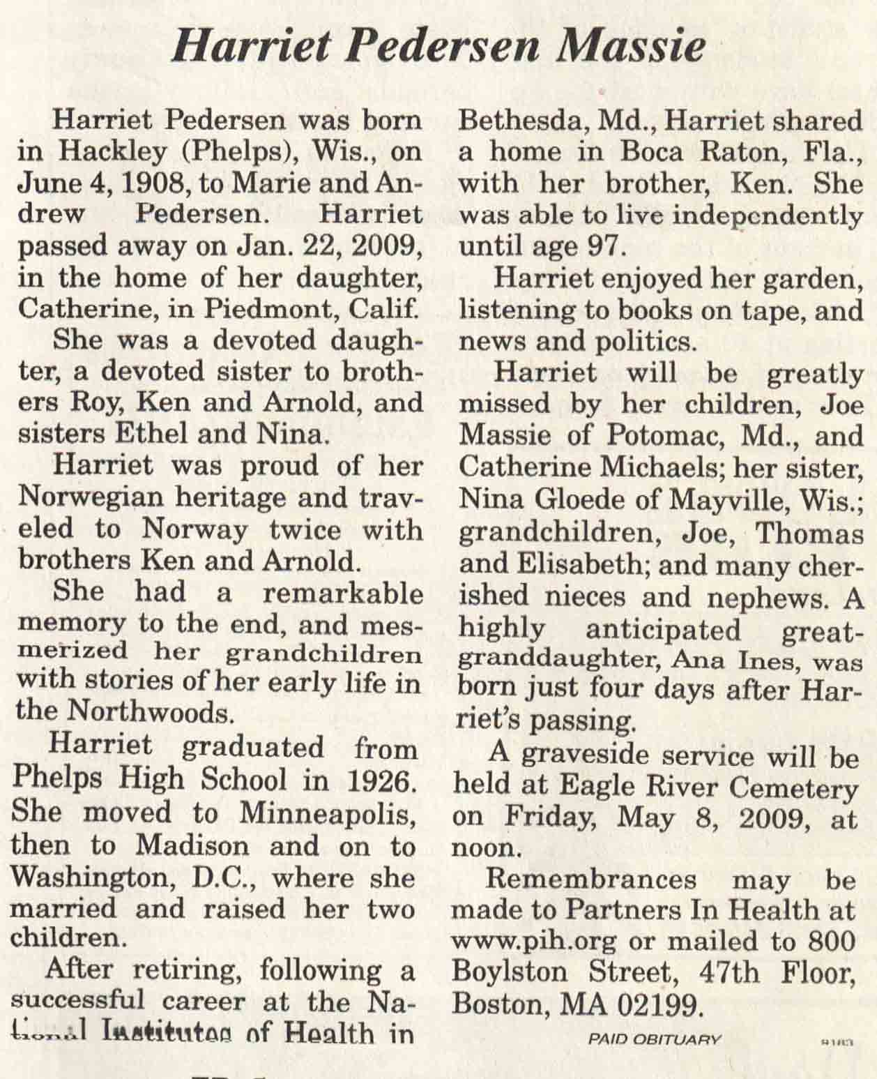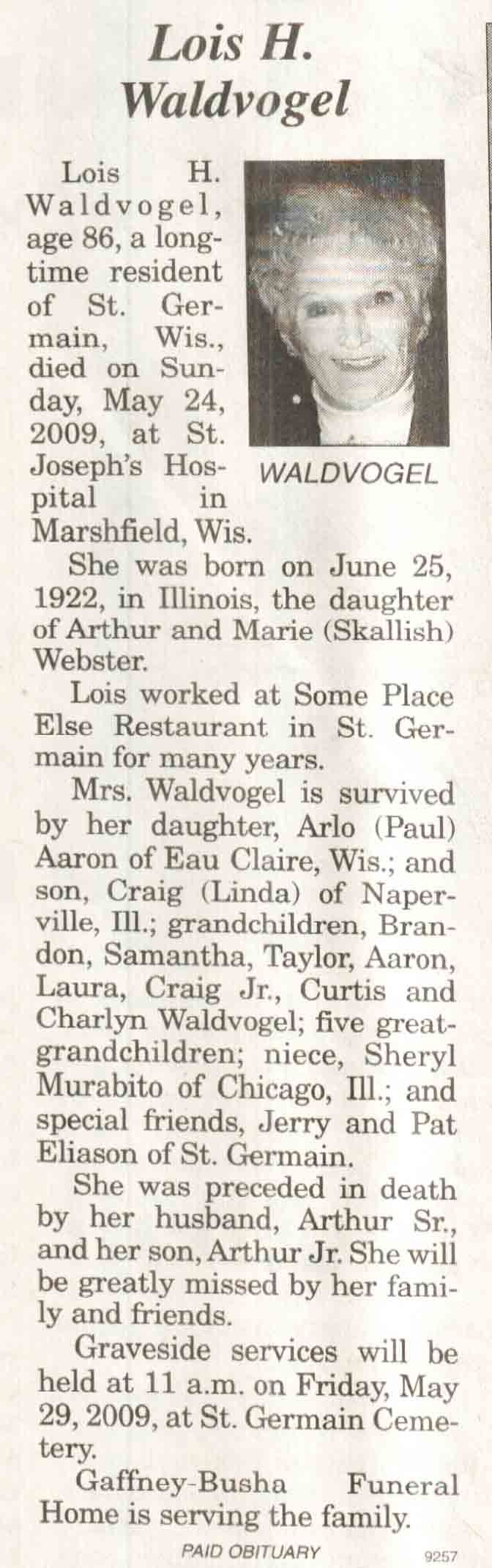 | Waldvogel | Lois H (Webster) | 25 Jun 1922 | 24 May 2009 | V N-R | 03 Jun 2009 | 4A |