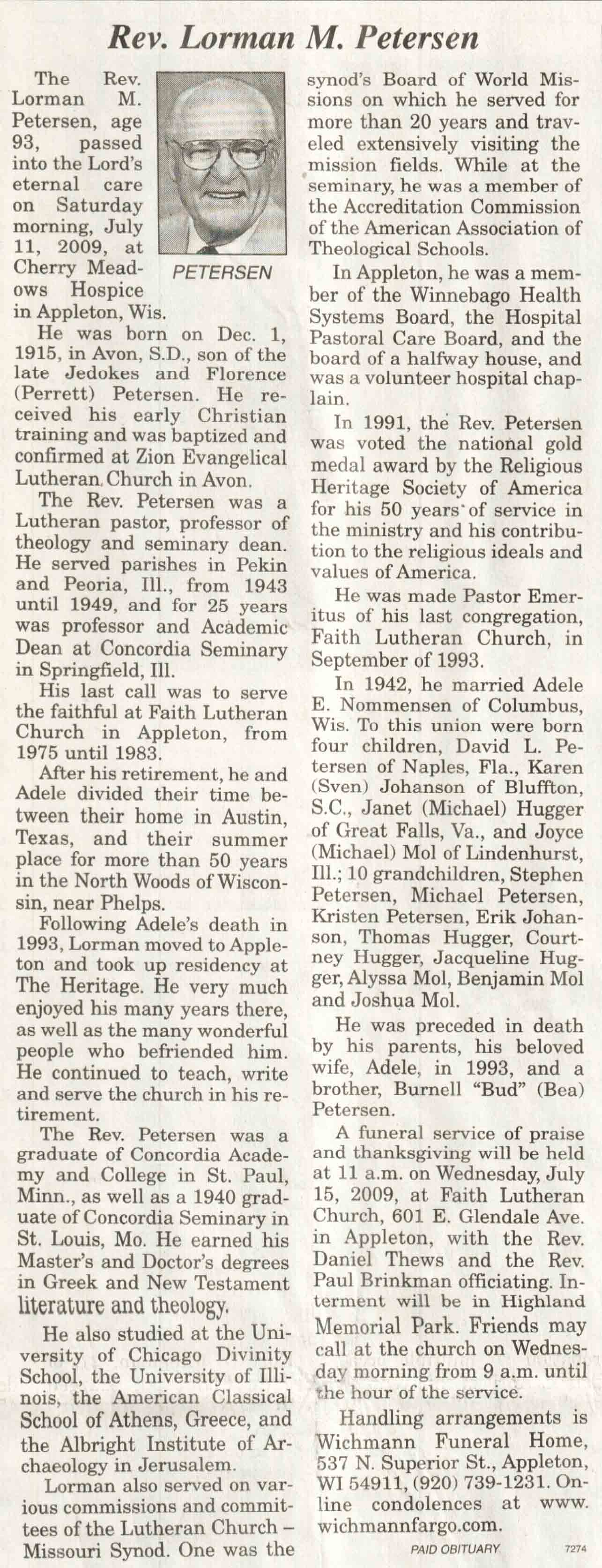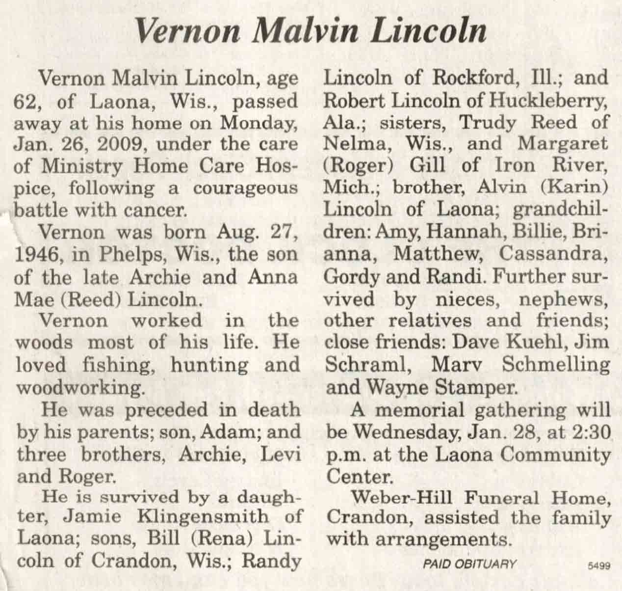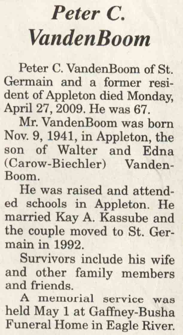 | VandenBoom | Peter C | 09 Nov 1941 | 27 Apr 2009 | V N-R | 13 May 2009 | 4A |