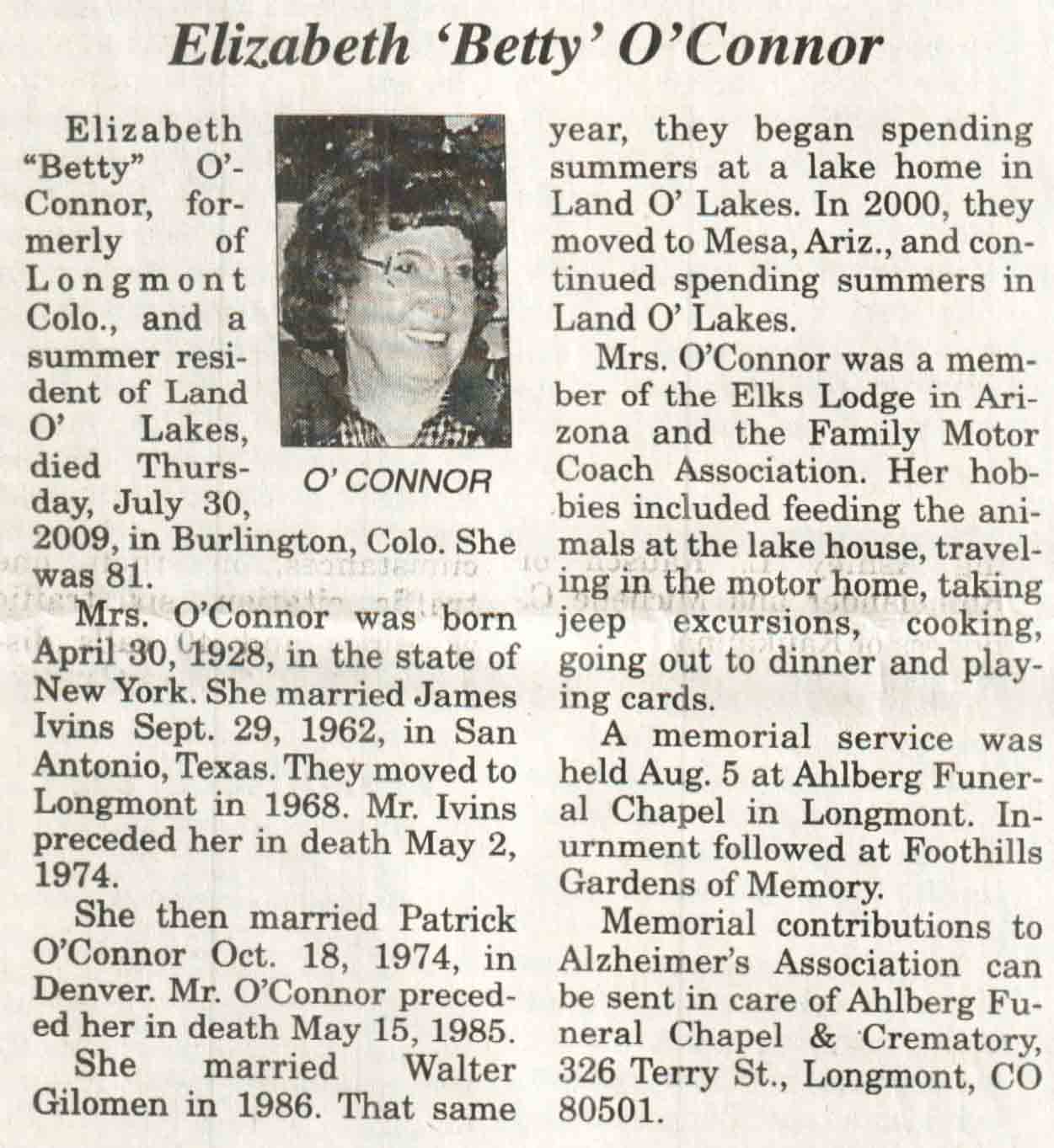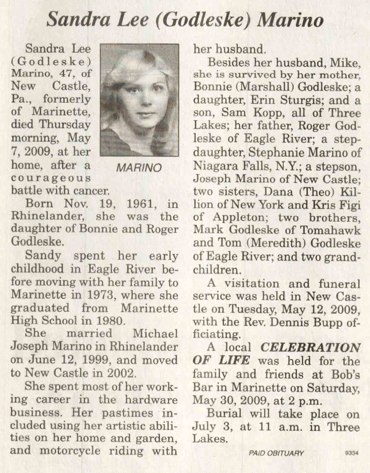| Zielinski | Vicky L (Nichols) | 22 Jul 1947 | 09 Jan 2009 | V N-R | 14 Jan 2009 | 4 |