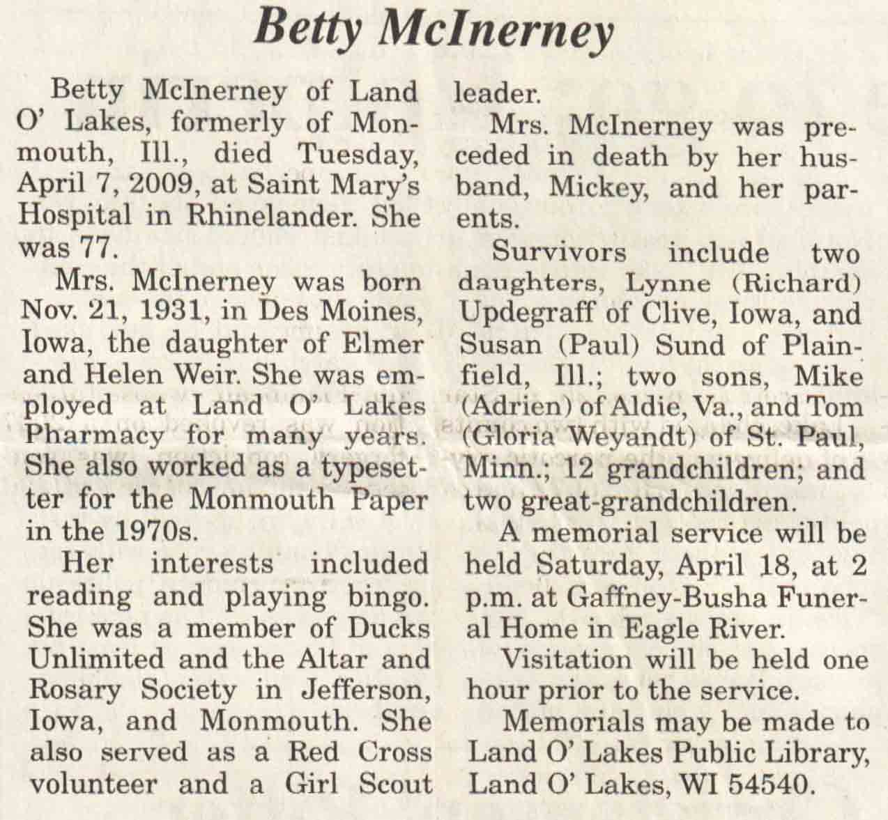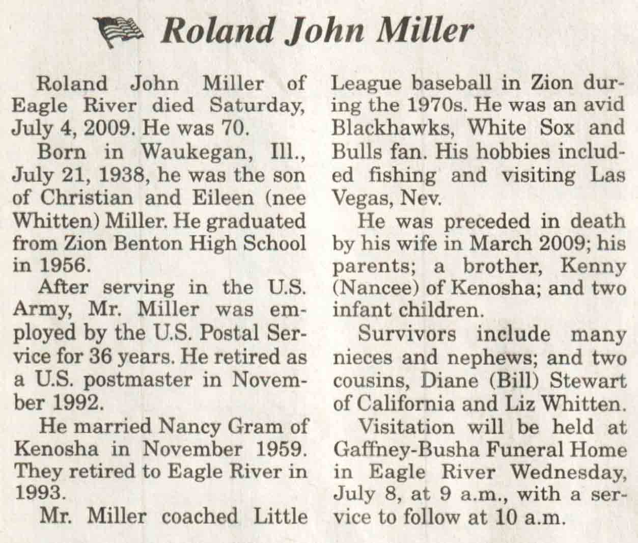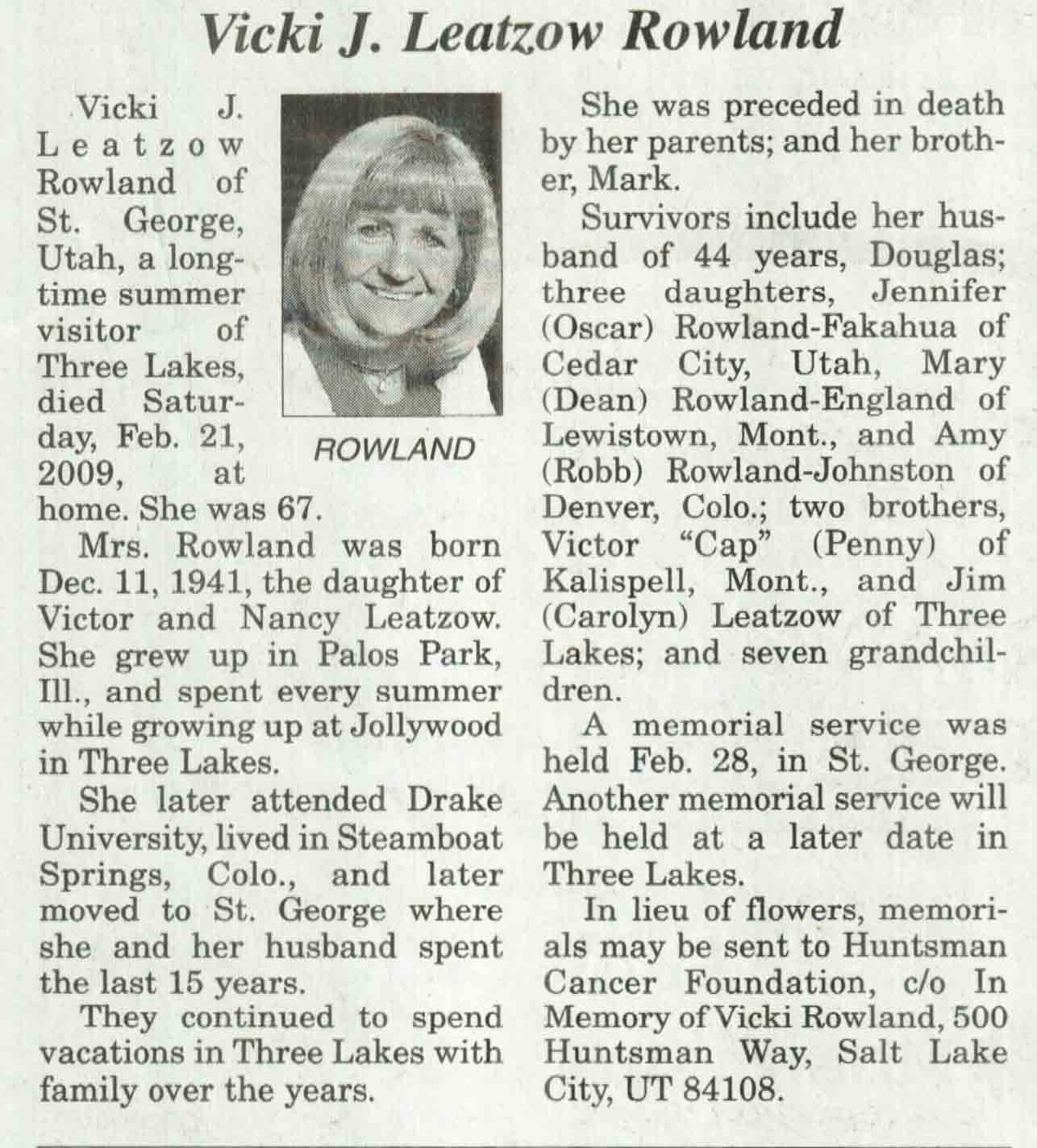 | Rowland | Vicki J (Leatzow) | 11 Dec 1941 | 21 Feb 2009 | V N-R | 11 Mar 2009 | 4 |
