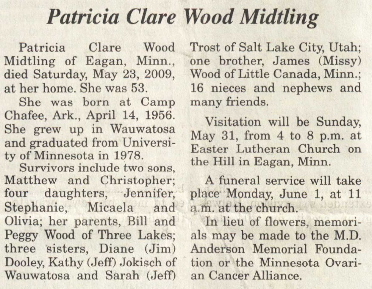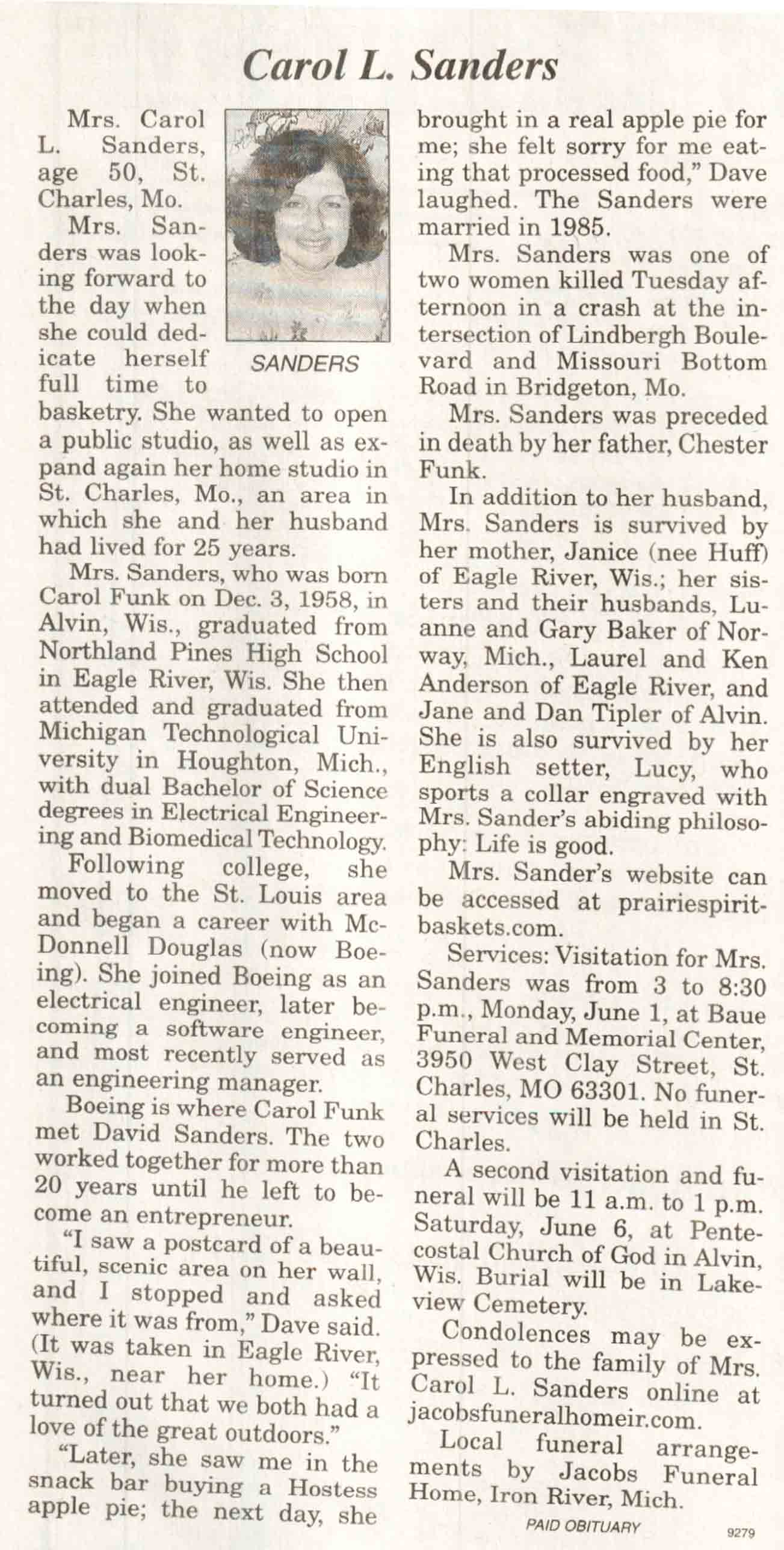 | Sanders | Carol L (Funk) | 03 Dec 1958 | 26 May 2009 | V N-R | 03 Jun 2009 | 4A |