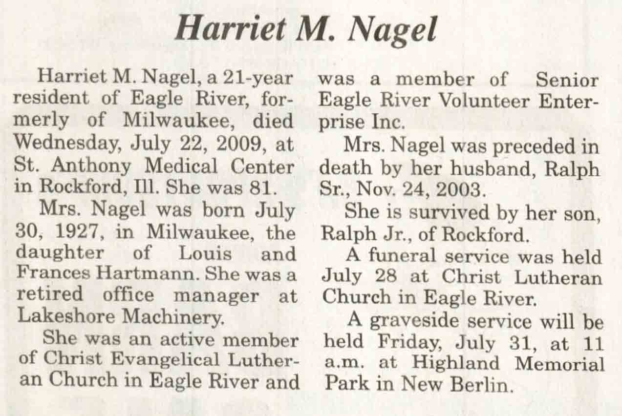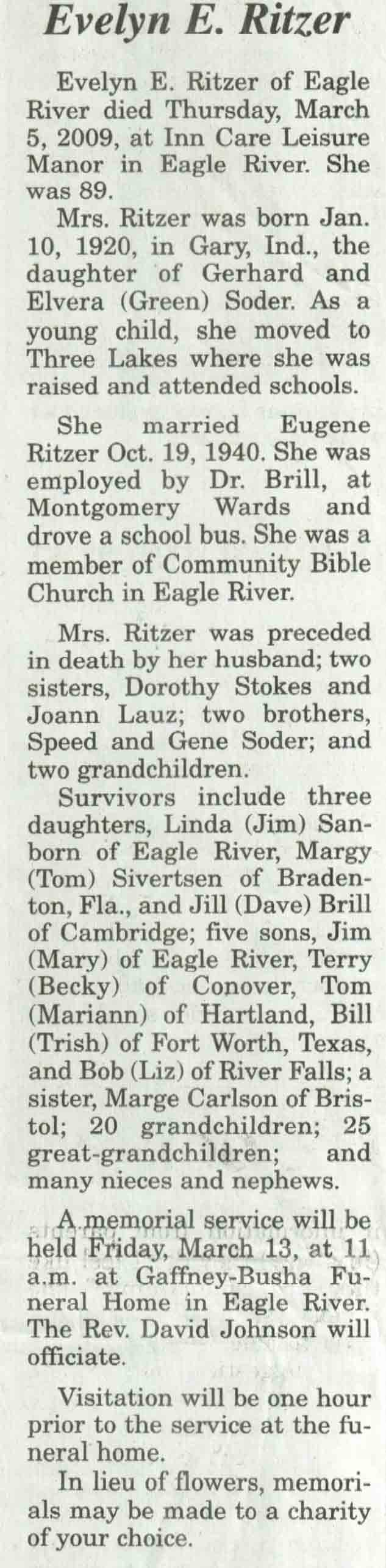 | Ritzer | Evelyn (Soder) | 10 Jan 1920 | 05 Mar 2009 | V N-R | 11 Mar 2009 | 4 |