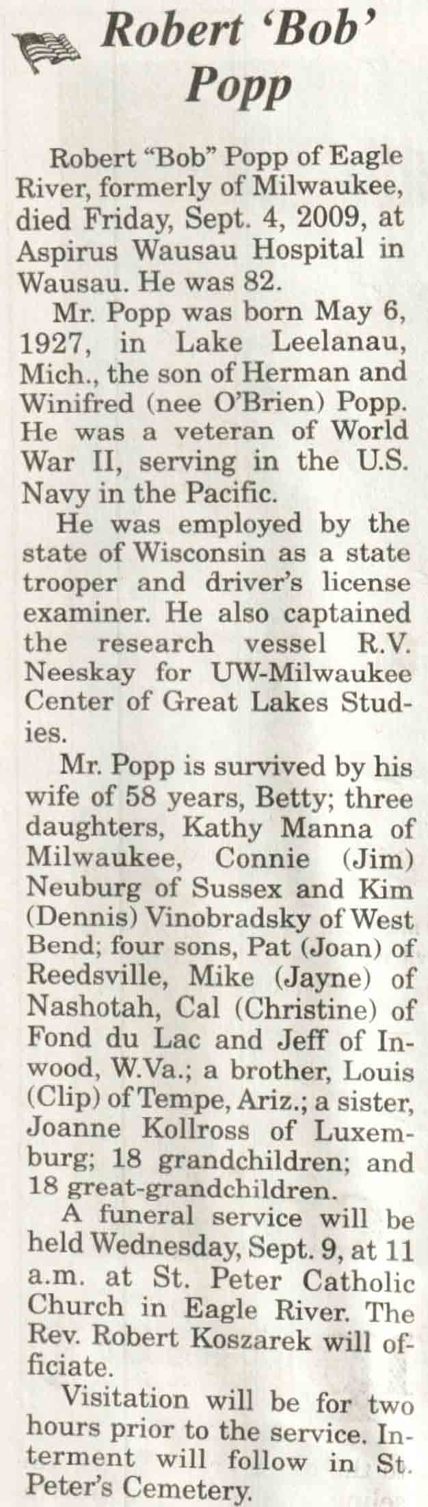 | Popp | Robert 'Bob' | 06 May 1927 | 04 Sep 2009 | V N-R | 09 Sep 2009 | 4A |