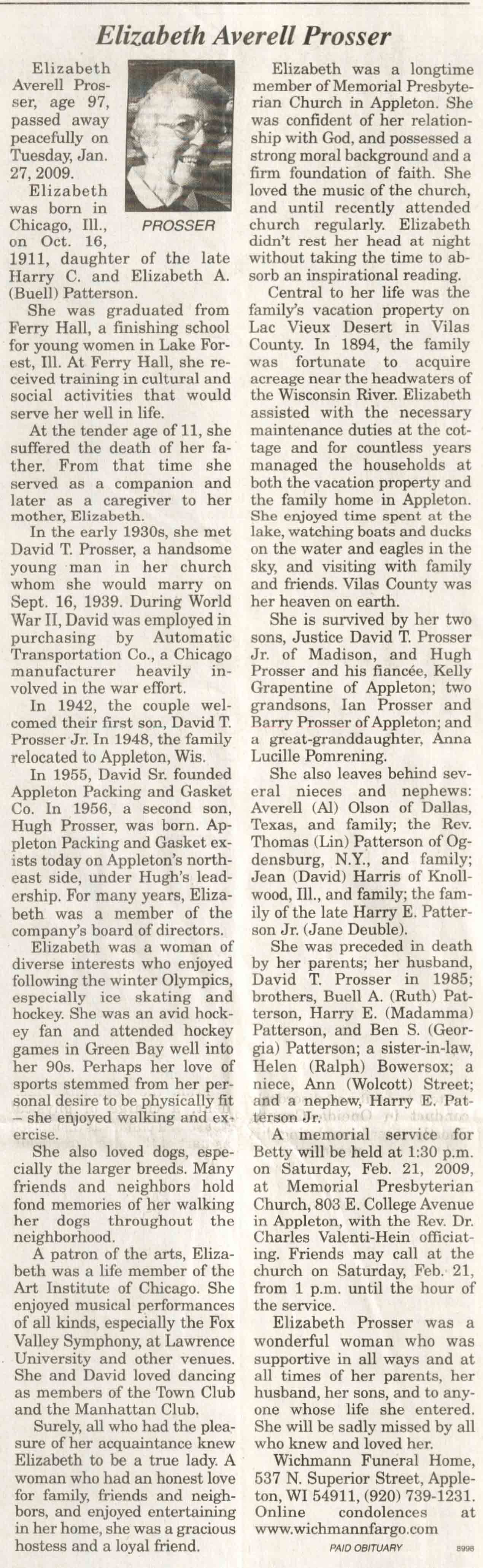 | Prosser | Elizabeth Averell (Patterson) | 16 Oct 1911 | 27 Jan 2009 | V N-R | 18 Feb 2009 | 4A |