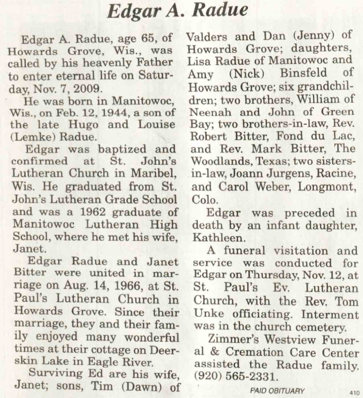 | Radue | Edgar A | 12 Feb 1944 | 07 Nov 2009 | V N-R | 09 Dec 2009 | 4A |