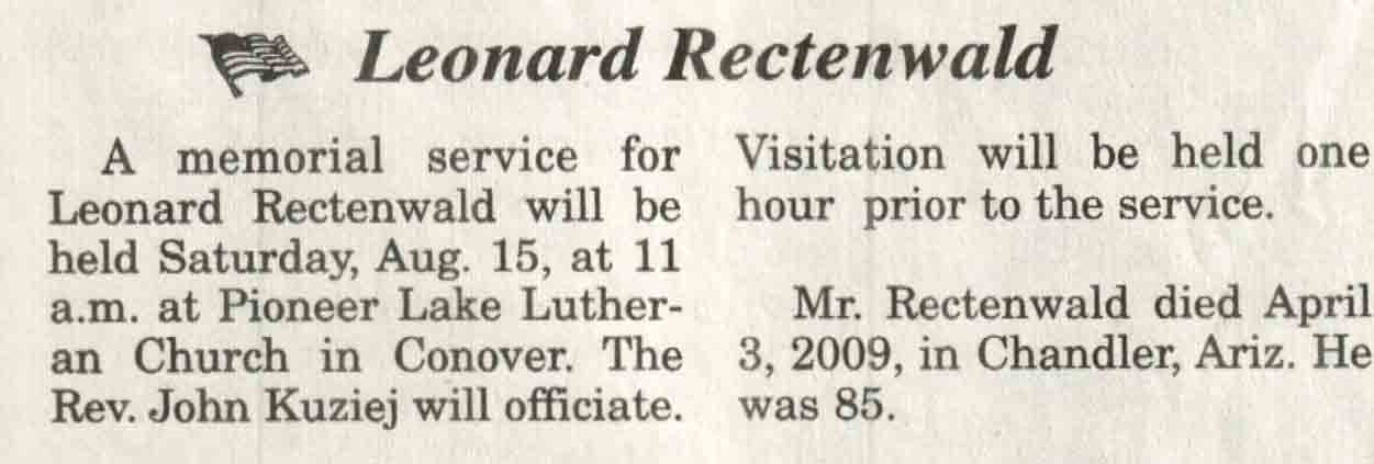 | Rectenwald | Leonard #2 | c 1924 | 03 Apr 2009 | V N-R | 12 Aug 2009 | 4A |