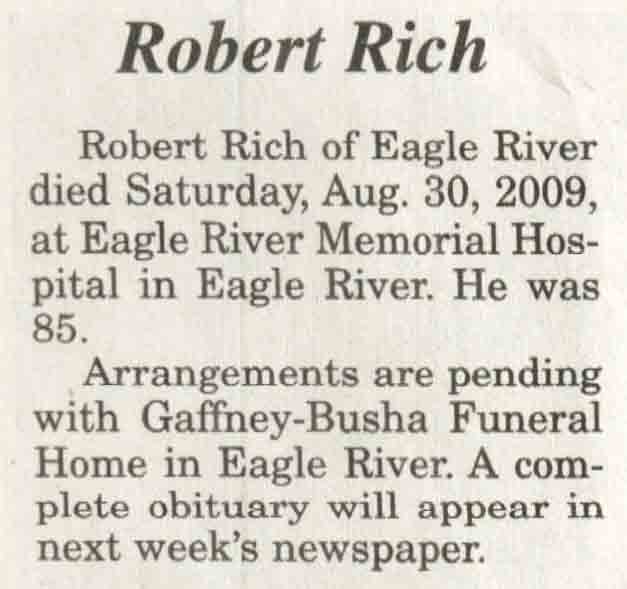 | Rich | Robert | c 1924 | 30 Aug 2009 | V N-R | 02 Sep 2009 | 4A |