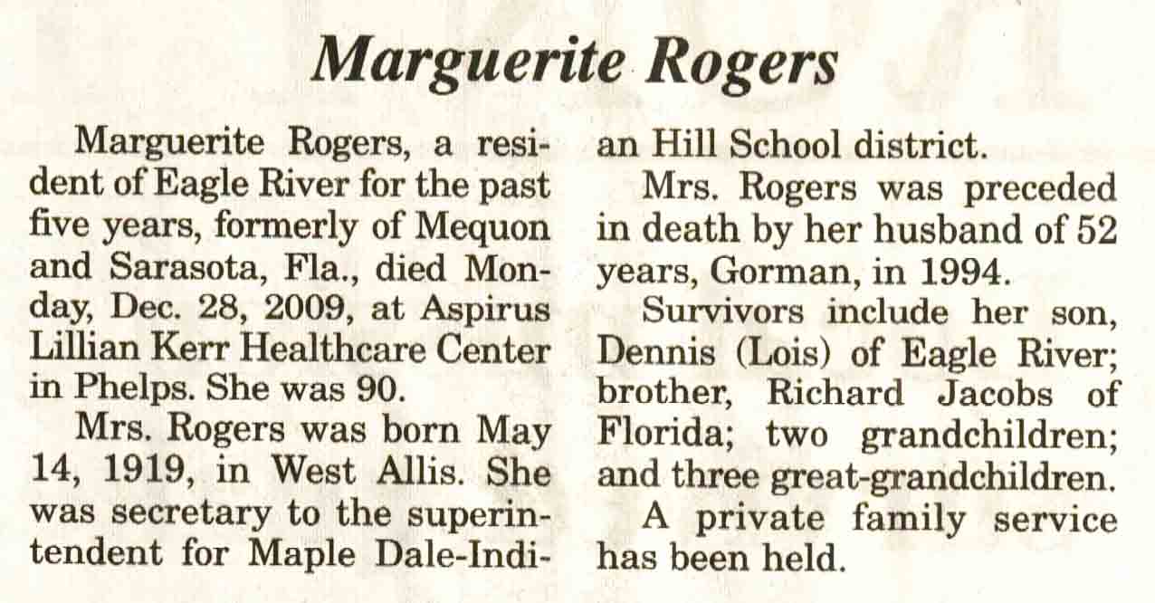 | Rogers | Marguerite | 14 May 1919 | 28 Dec 2009 | V N-R | 20 Jan 2010 | 6A |