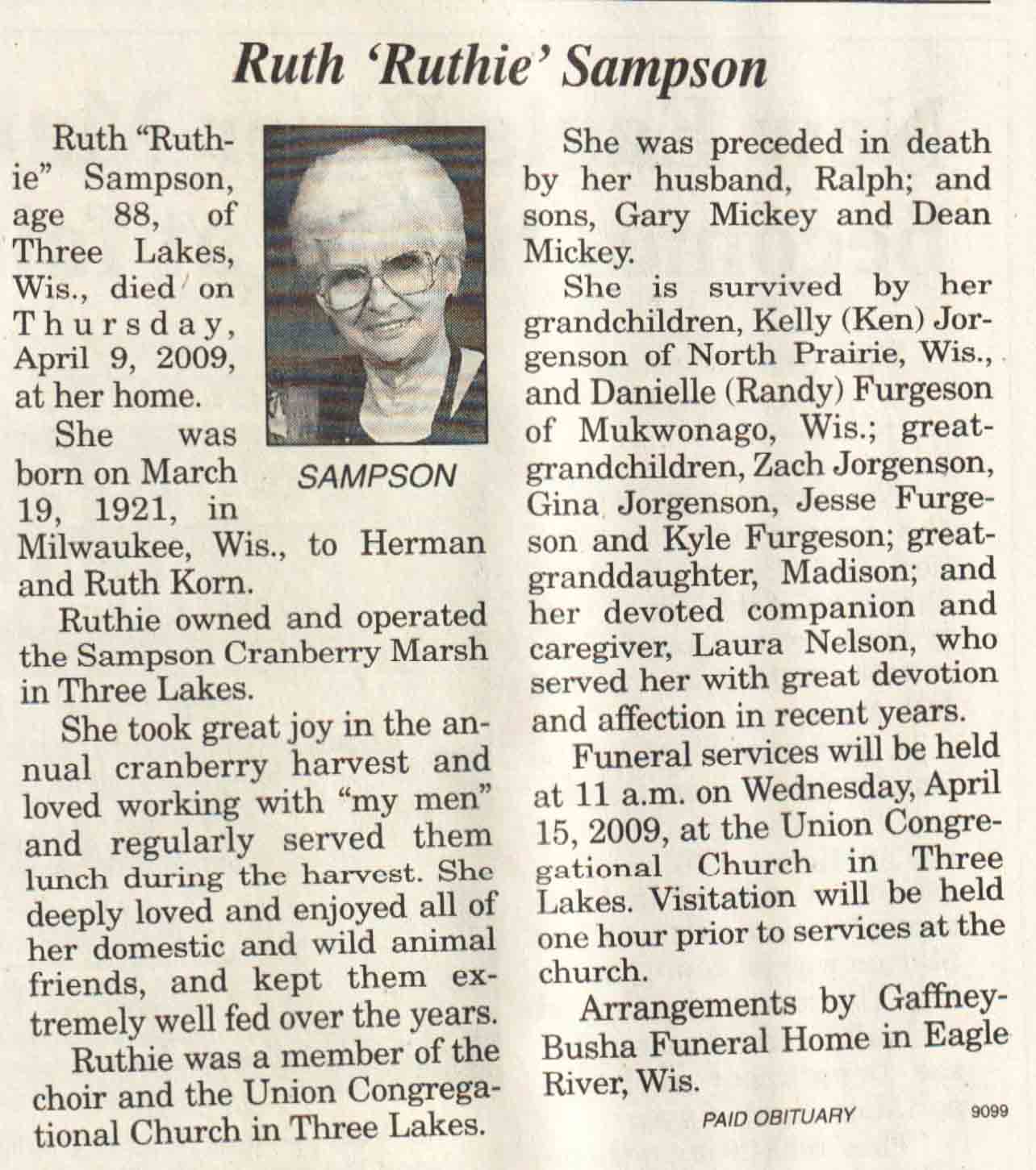 | Sampson | Ruth 'Ruthie' (Korn) | 19 Mar 1921 | 09 Apr 2009 | V N-R | 15 Apr 2009 | 4A |