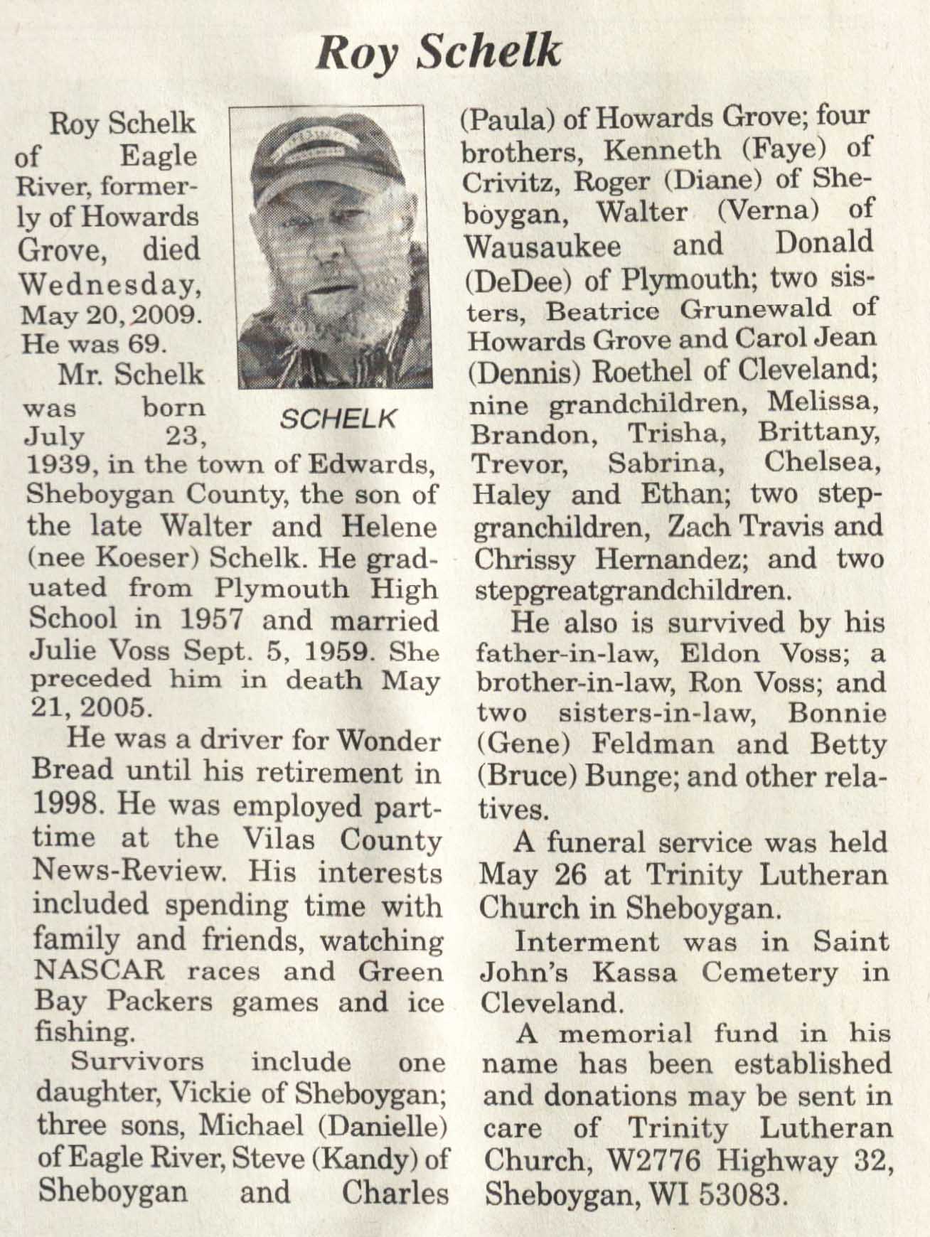 | Schelk | Roy R | 23 Jul 1939 | 20 May 2009 | V N-R | 27 May 2009 | 4A |