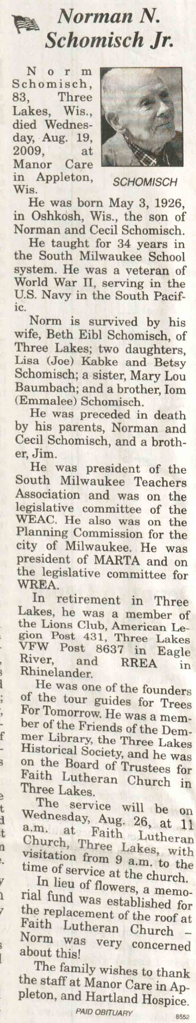 | Schomisch | Norman N, Jr | 03 May 1926 | 19 Aug 2009 | V N-R | 26 Aug 2009 | 4A |