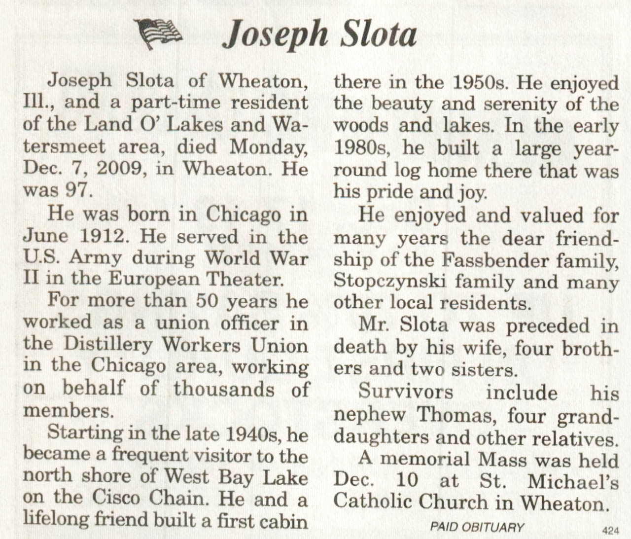 | Slota | Joseph | Jun 1912 | 07 Dec 2009 | V N-R | 16 Dec 2009 | 4A |