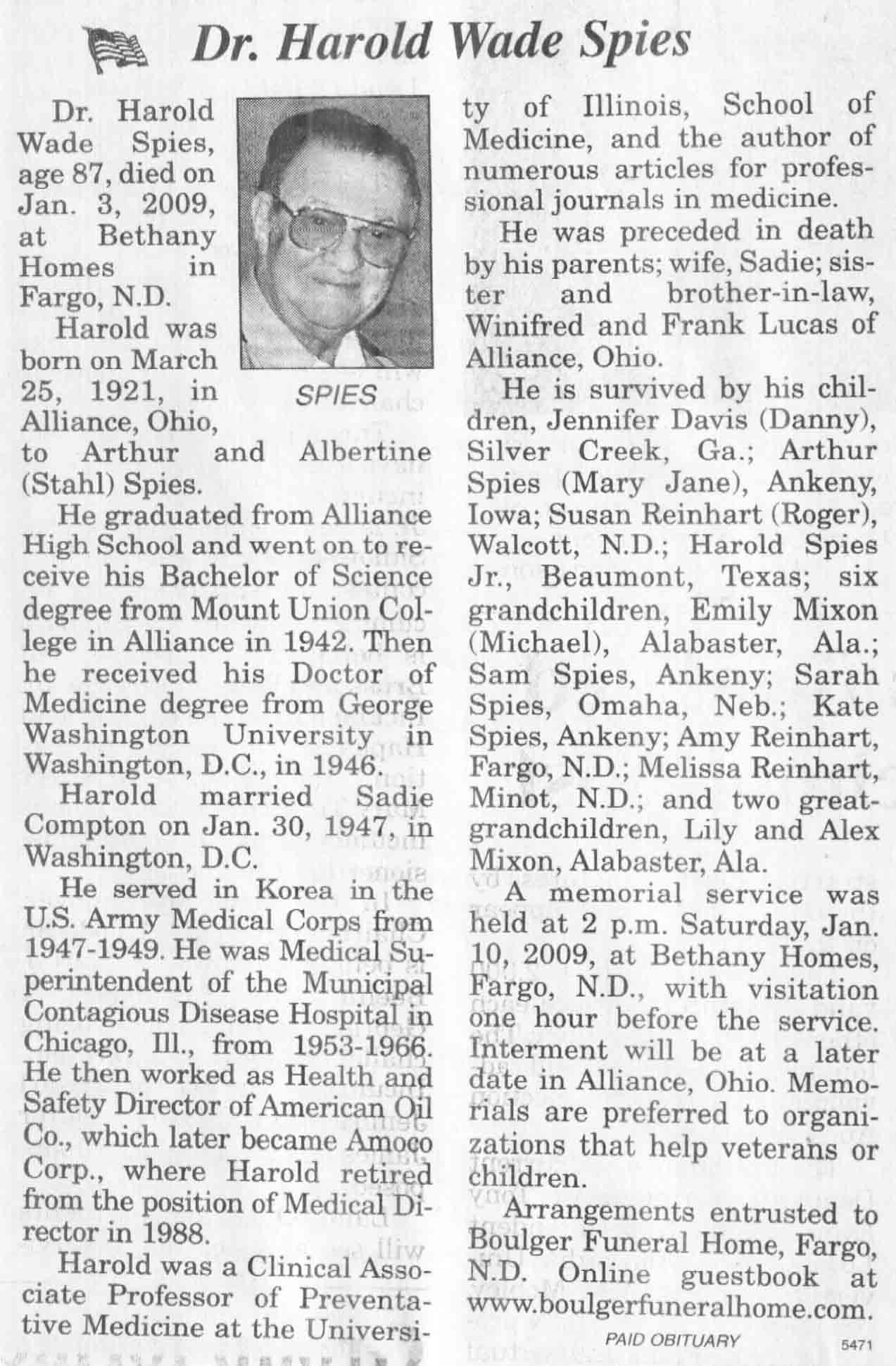 | Spies | Harold Wade, Dr | 25 Mar 1921 | 03 Jan 2009 | V N-R | 14 Jan 2009 | 4 |
