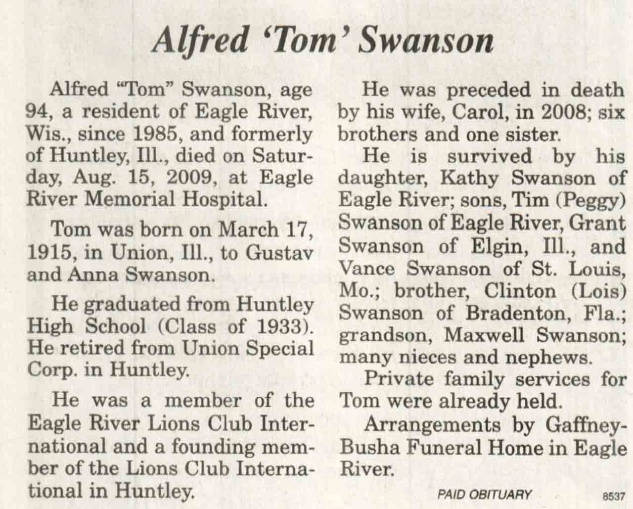 | Swanson | Alfred 'Tom' | 17 Mar 1915 | 15 Aug 2009 | V N-R | 19 Aug 2009 | 4A |