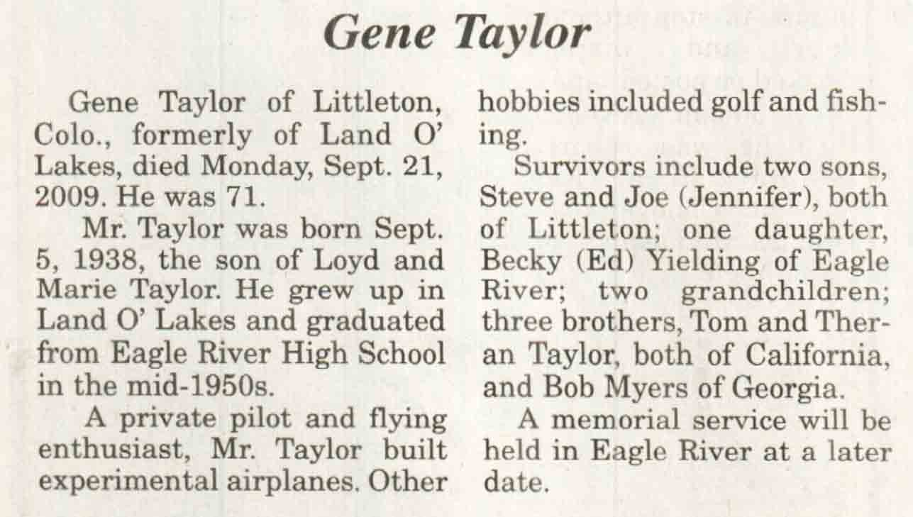 | Taylor | Gene | 05 Sep 1938 | 21 Sep 2009 | V N-R | 07 Oct 2009 | 4A |
