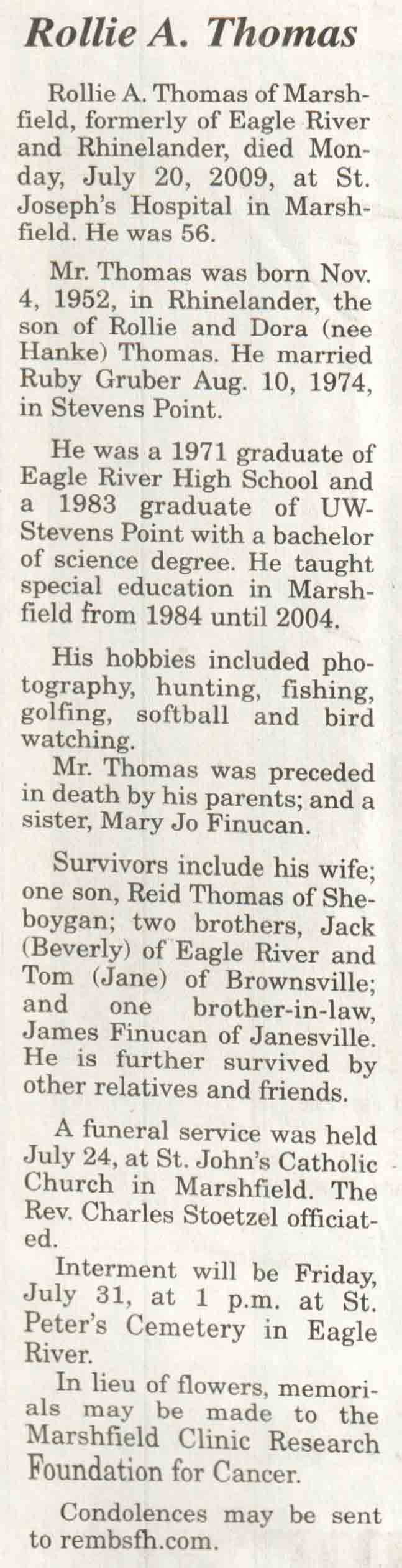 | Thomas | Rollie A | 04 Nov 1952 | 20 Jul 2009 | V N-R | 29 Jul 2009 | 4A |