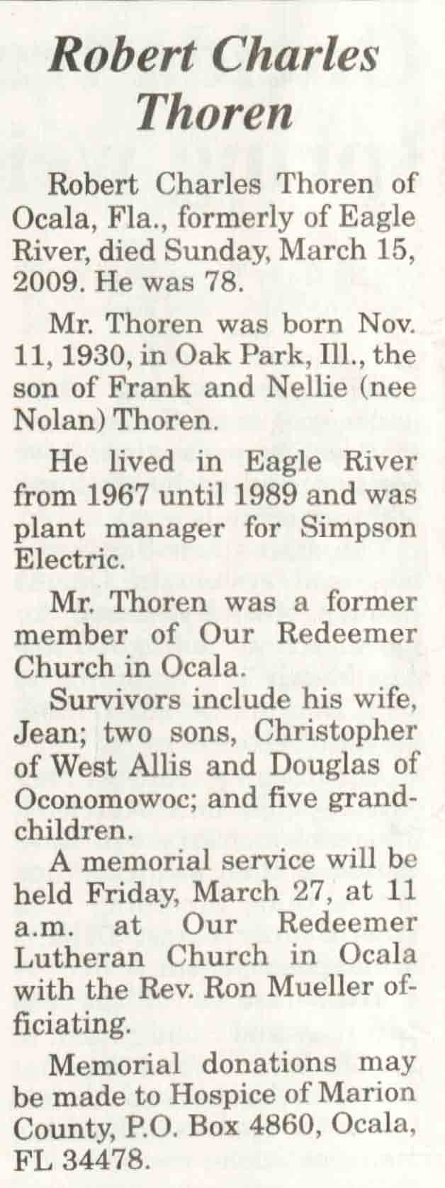 | Thoren | Robert Charles | 11 Nov 1930 | 15 Mar 2009 | V N-R | 18 Mar 2009 | 4A |