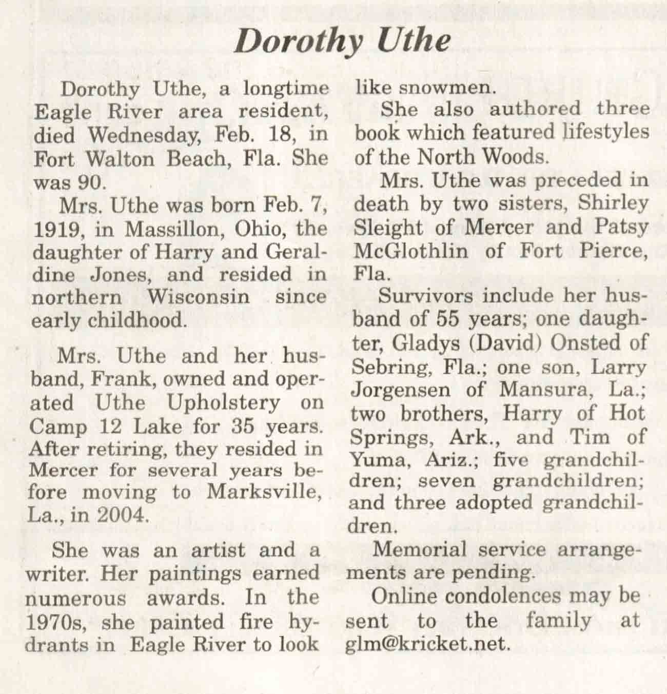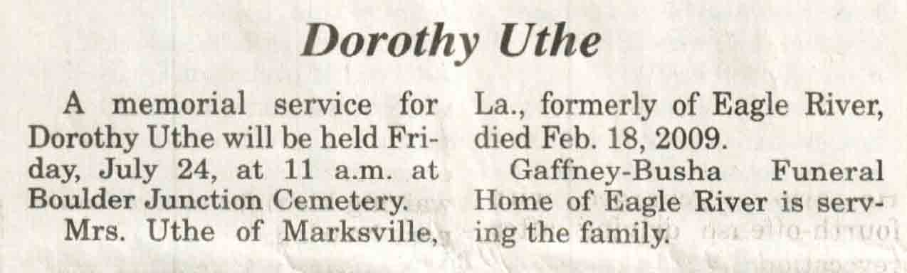 | Uthe | Dorothy (Jones) #1 | 07 Feb 1919 | 18 Feb 2009 | V N-R | 25 Feb 2009 | 4A |