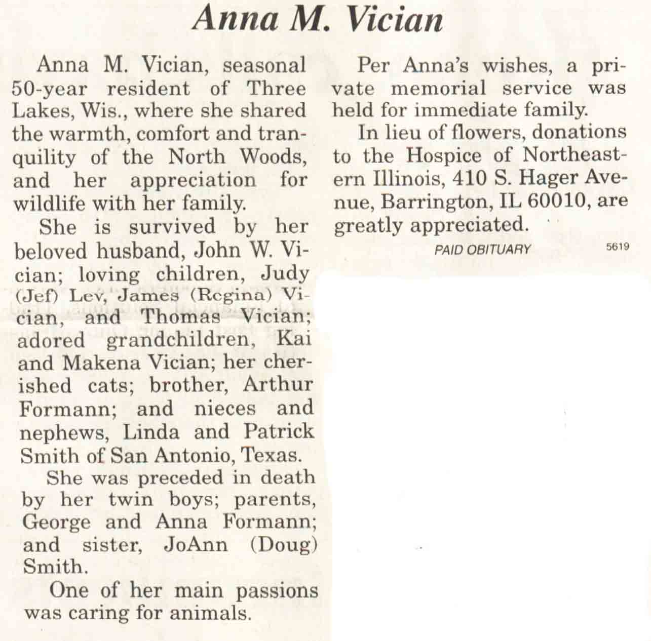 | Vician | Anna M (Formann) | 2009 | V N-R | 15 Apr 2009 | 4A | |